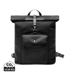 Městský batoh s magnetickým a zavinovacím zapínáním | Prostorný hlavní oddíl s polstrovanou přihrádkou na notebook | Vnější materiál rPET | Kapsa na zip na zádech | Důmyslná polstrovaná zadní strana se skrytou přihrádkou na zip | Polstrovaná základna | Polstrované ramenní popruhy s nastavitelnou délkou a elastickými poutky na připevnění předmětů, jako jsou sluneční brýle | Rukojeť