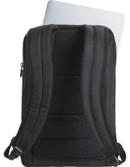 Polyester 1680d a Polyester 600d. Elegantní a efektivní business batoh. Polstrovaná hlavní přihrádka s obousměrným zipem, prvky organizéru, polstrovaná přihrádka a síťovaná přihrádka na zip. Velká polstrovaná kapsa na notebook se samostatným přístupem
