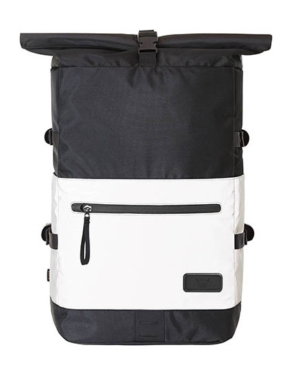 Stylový reflexní batoh s rolovacím horním okrajem, hlavním oddílem na zip a zapínáním na přezky | Nosič loga HFL® | Polstrovaná vložená kapsa a vnitřní oddíl ze síťoviny na zip | Dvě boční vložené kapsy | Nastavitelné popruhy | Přední kapsa na zip | Možnost upevnit světlo LED na kolo | Zadní upevňovací poutko na madla vozíku | Skrytý oddíl na zip | Systém polstrovaných popruhů a výškově nastavitelným hrudním popruhem | Ucho | Dodávka bez dekorace/obsahu.