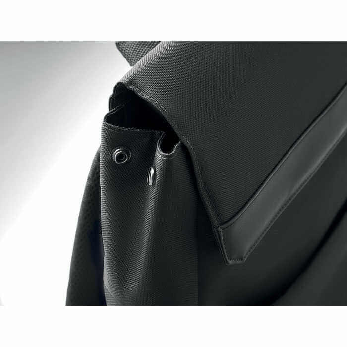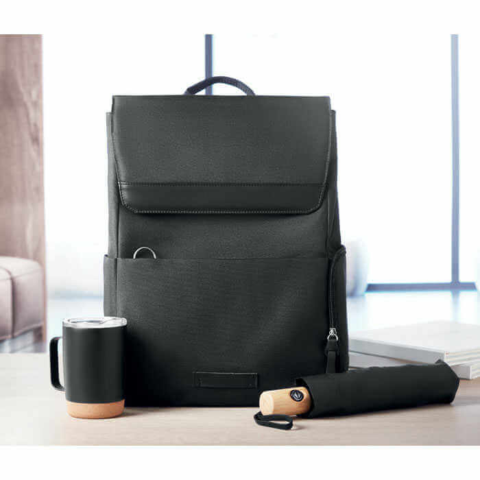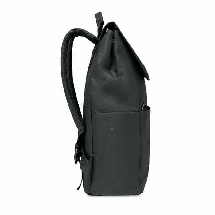 Dvoubarevný batoh na 15-ti palcový notebook z materiálu RPET 600D se zapínáním na magnetický knoflík. V tomto stylově vypadajícím batohu můžete pohodlně s sebou nosit do kanceláře nebo jinam svůj notebook nebo tablet. Přihrádka na notebook je polstrovaná pro lepší ochranu a bezpečnost při jeho přenášení. Má přední kapsy na zip a dvě boční kapsy pro uložení menších předmětů, jako je notebook nebo láhev na pití. Batoh je vyroben z recyklovaného PET plastu.