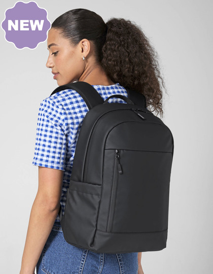 Obsahuje certifikovaný recyklovaný polyester 900D s PU zátěrem | Voděodolné materiály | Hlavní přihrádka na zip | Polstrovaná přihrádka na notebook kompatibilní s úhlopříčkou až 16" | Samostatná polstrovaná kapsa na iPad/tablet | Přední kapsa na zip | Elastické boční kapsy | Polstrovaný zadní panel | Polstrovaná základna | Voděodolné zipy | Polstrované nastavitelné ramenní popruhy | Madlo pro uchopení | Nastavitelný hrudní pás | Štítek TearAway pro snadnou změnu značky | Dodávka bez dekorace/obsahu | Nelze prát