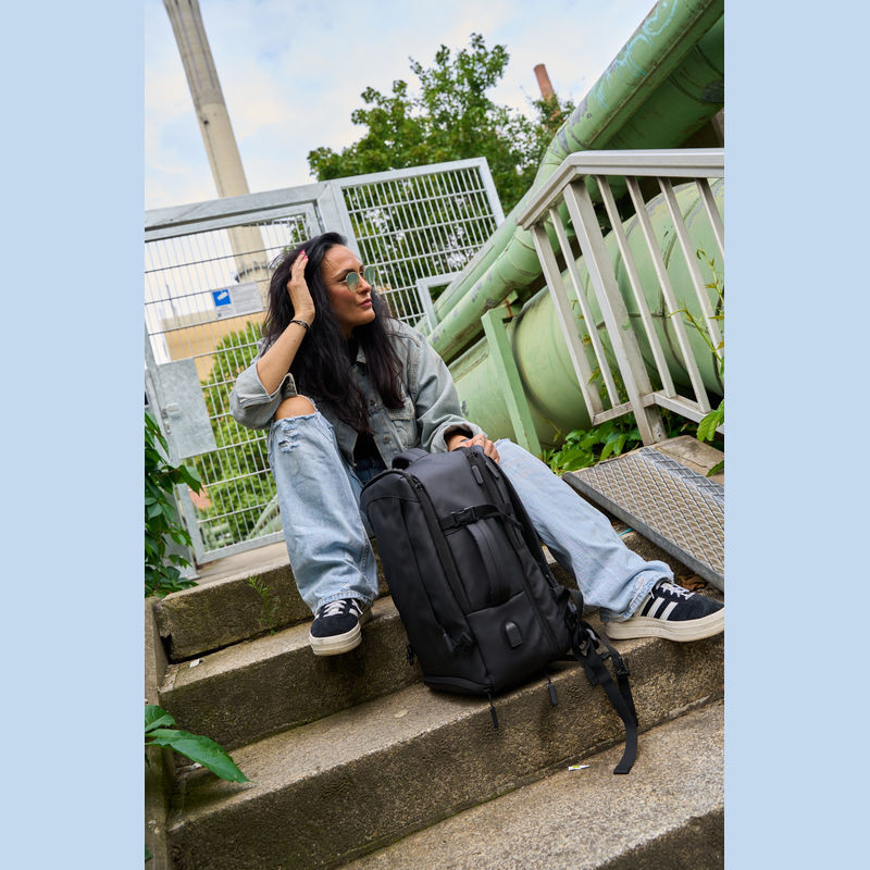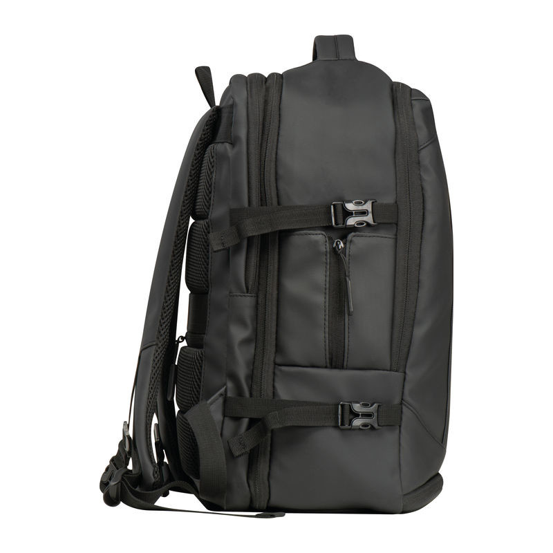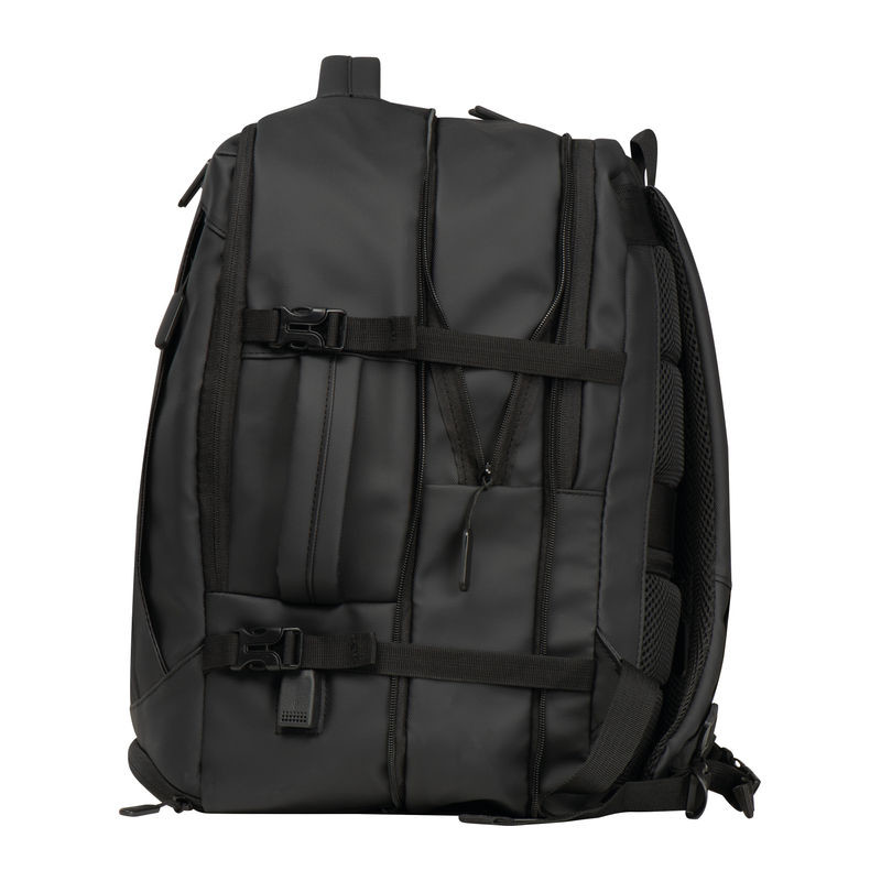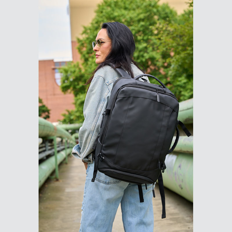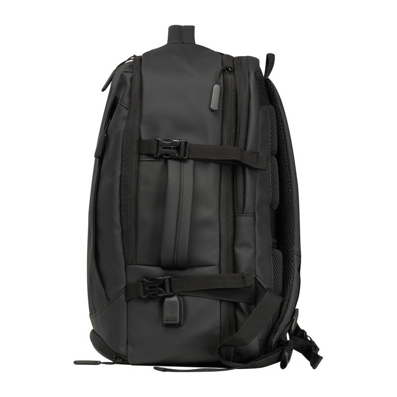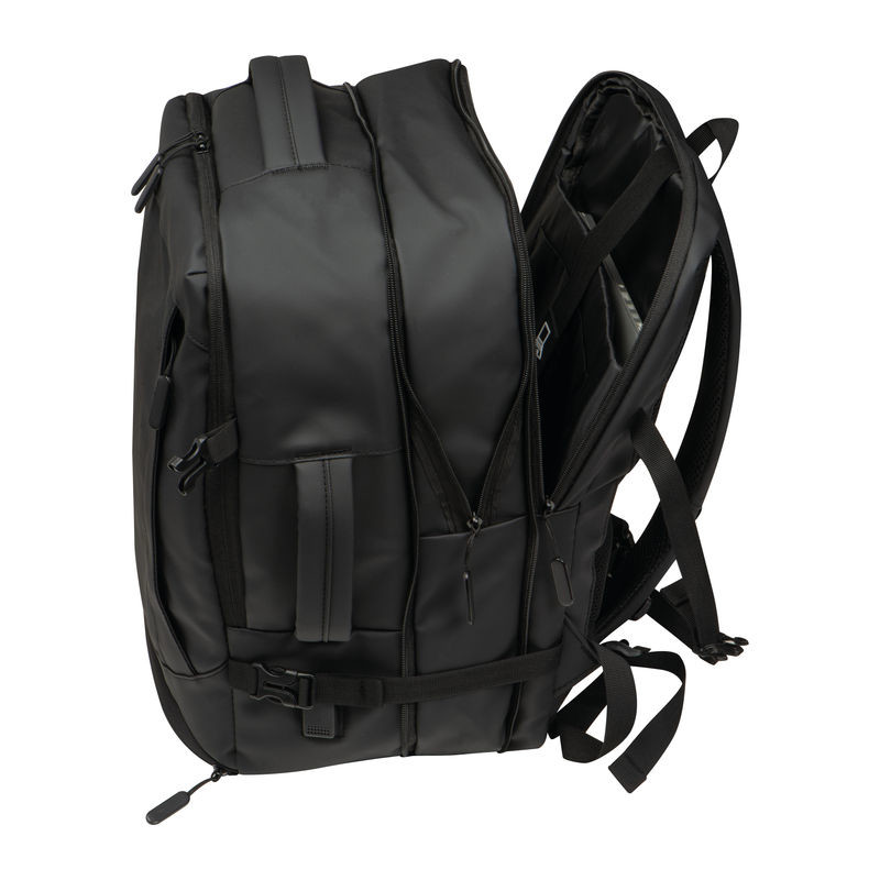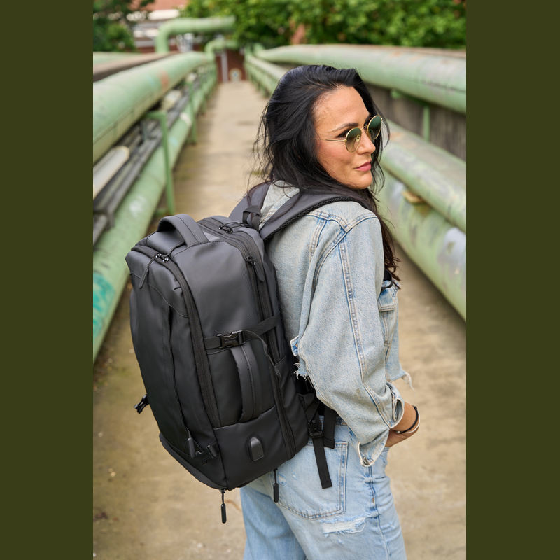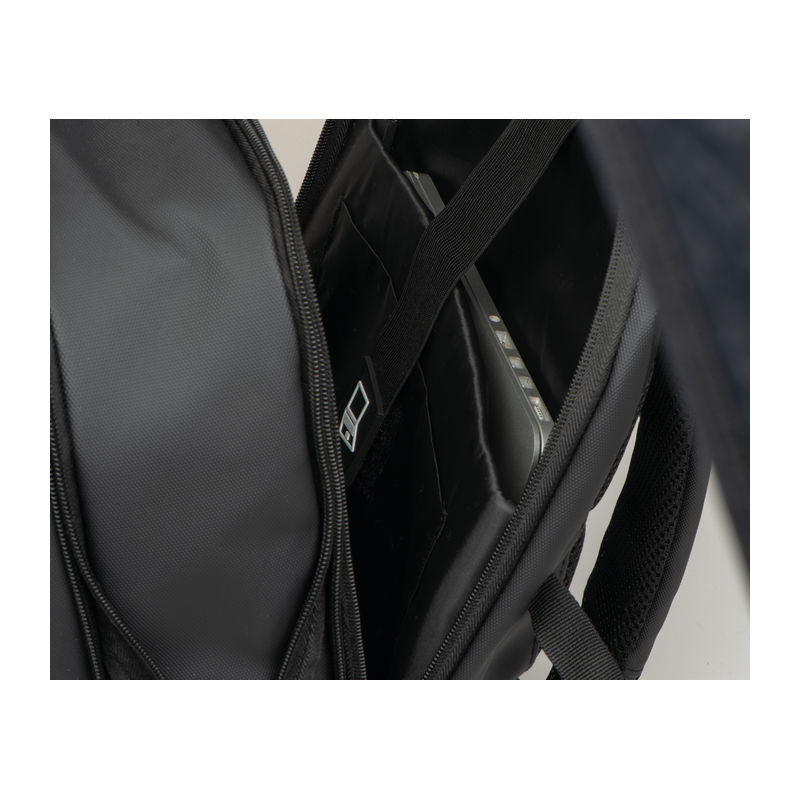 Vysoce kvalitní batoh vyrobený z 300D polyesteru. přihrádku na notebook s uzávěrem a dodatečnou kapsou, bezpečnostní kapsu na zadní straně, boční kapsu se síťovanou vložkou a roztažitelným zipem, přihrádku na prádlo ve spodní části, polstrovanou kapsu na přední straně, a přední boční kapsu na zip, různé vnitřní kapsy. Kromě toho obsahuje USB port s kabelem, dvě rukojeti pro přenášení, popruh na vozík, polstrované ramenní popruhy, polstrovaná záda a zip pro rozšíření batohu.