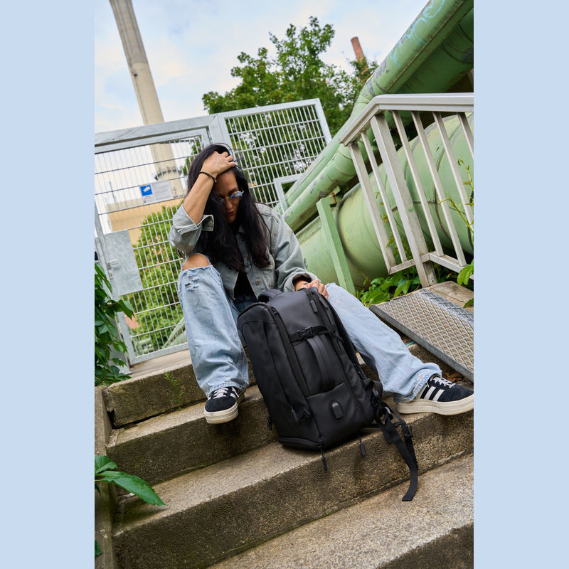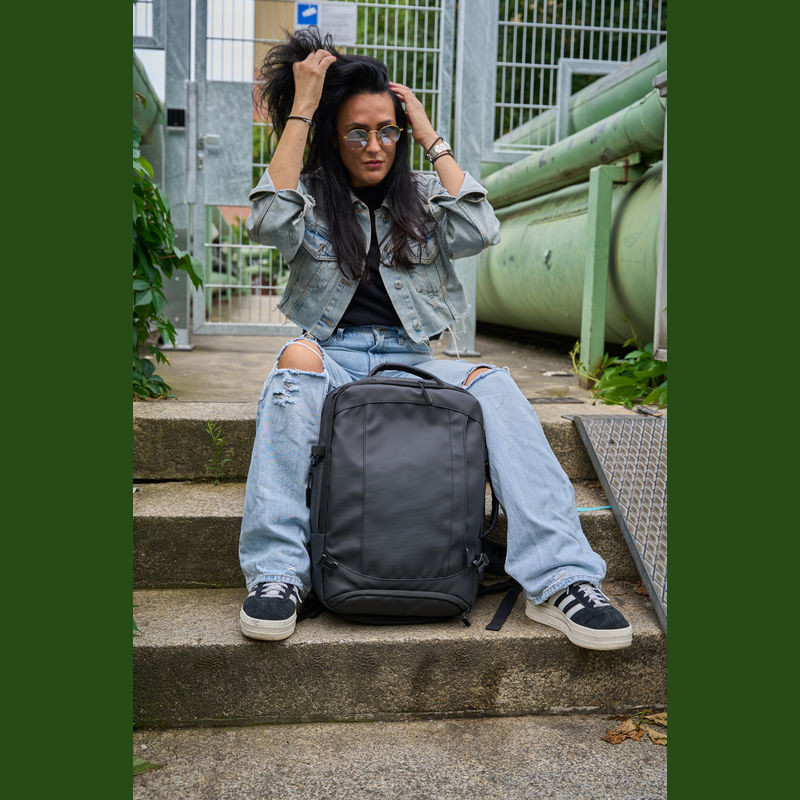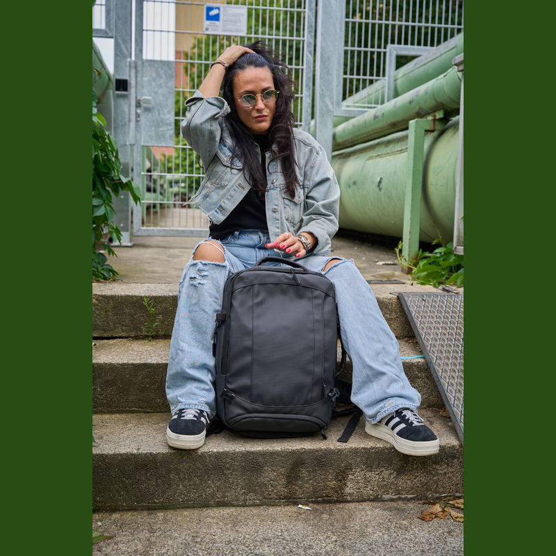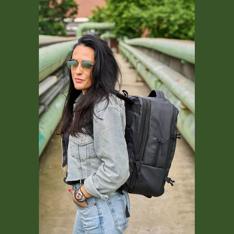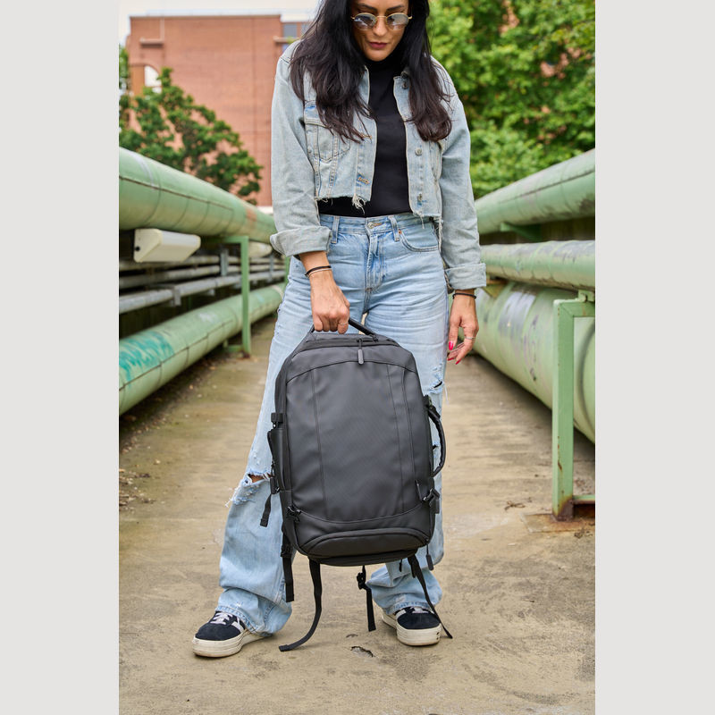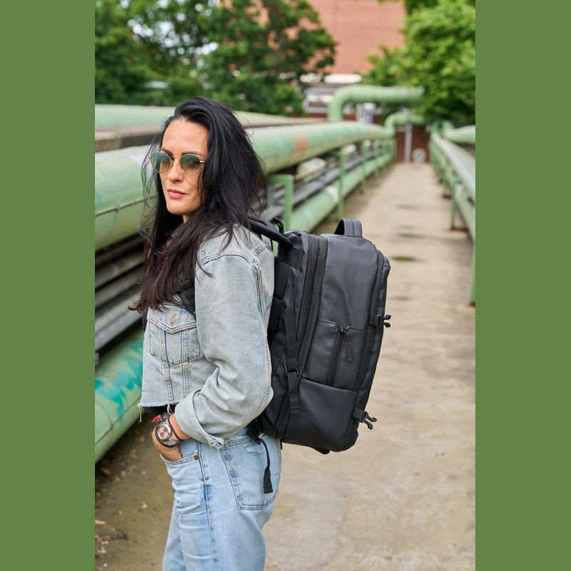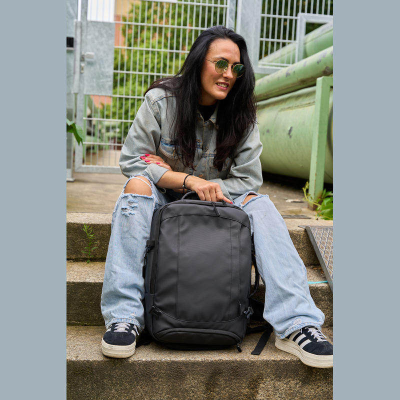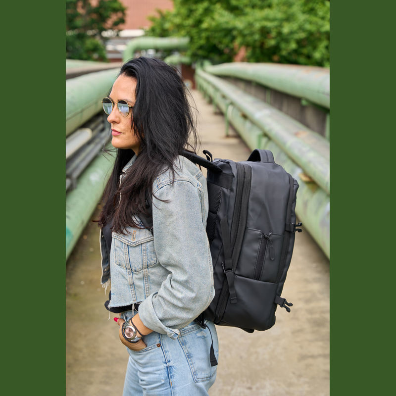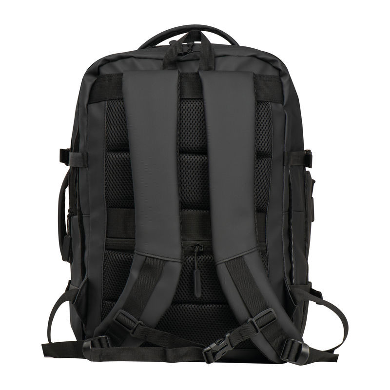Vysoce kvalitní batoh vyrobený z 300D polyesteru. přihrádku na notebook s uzávěrem a dodatečnou kapsou, bezpečnostní kapsu na zadní straně, boční kapsu se síťovanou vložkou a roztažitelným zipem, přihrádku na prádlo ve spodní části, polstrovanou kapsu na přední straně, a přední boční kapsu na zip, různé vnitřní kapsy. Kromě toho obsahuje USB port s kabelem, dvě rukojeti pro přenášení, popruh na vozík, polstrované ramenní popruhy, polstrovaná záda a zip pro rozšíření batohu.