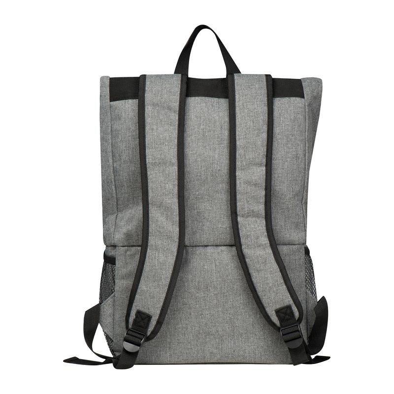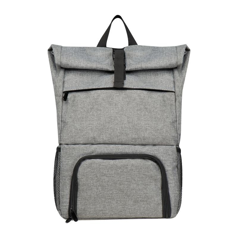 Stylový batoh z robustního 600D polyesteru s odděleným chladícím prostorem. Pomocí nastavitelného zacvakávacího uzávěru v horní části lze velikost batohu individuálně přizpůsobit výplni. Má také přední přihrádku na zip, dvě síťované přihrádky na vnější straně (jedna vpravo a druhá vlevo) a nastavitelné polstrované ramenní popruhy.