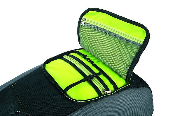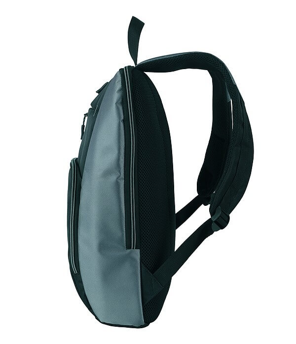 Lehký batoh značky Schwarzwolf s vyztuženou částí na záda v černé barvě se zeleným lemováním. Batoh obsahuje jednu velkou kapsu na notebook se zipem a uvnitř kapsu na suchý zip. Ve předu je jedna menší kapsa a jedna větší kapsa, která v sobě zahrnuje dvě větší a dvě menší přihrádky, dvě přihrádky na propisky a jednu síťovanou kapsu na zip. Objem: 15 l. Hmotnost: 470 g. Materiál: 1680D polyester. Rozměry: 34 × 10 × 42 cm.