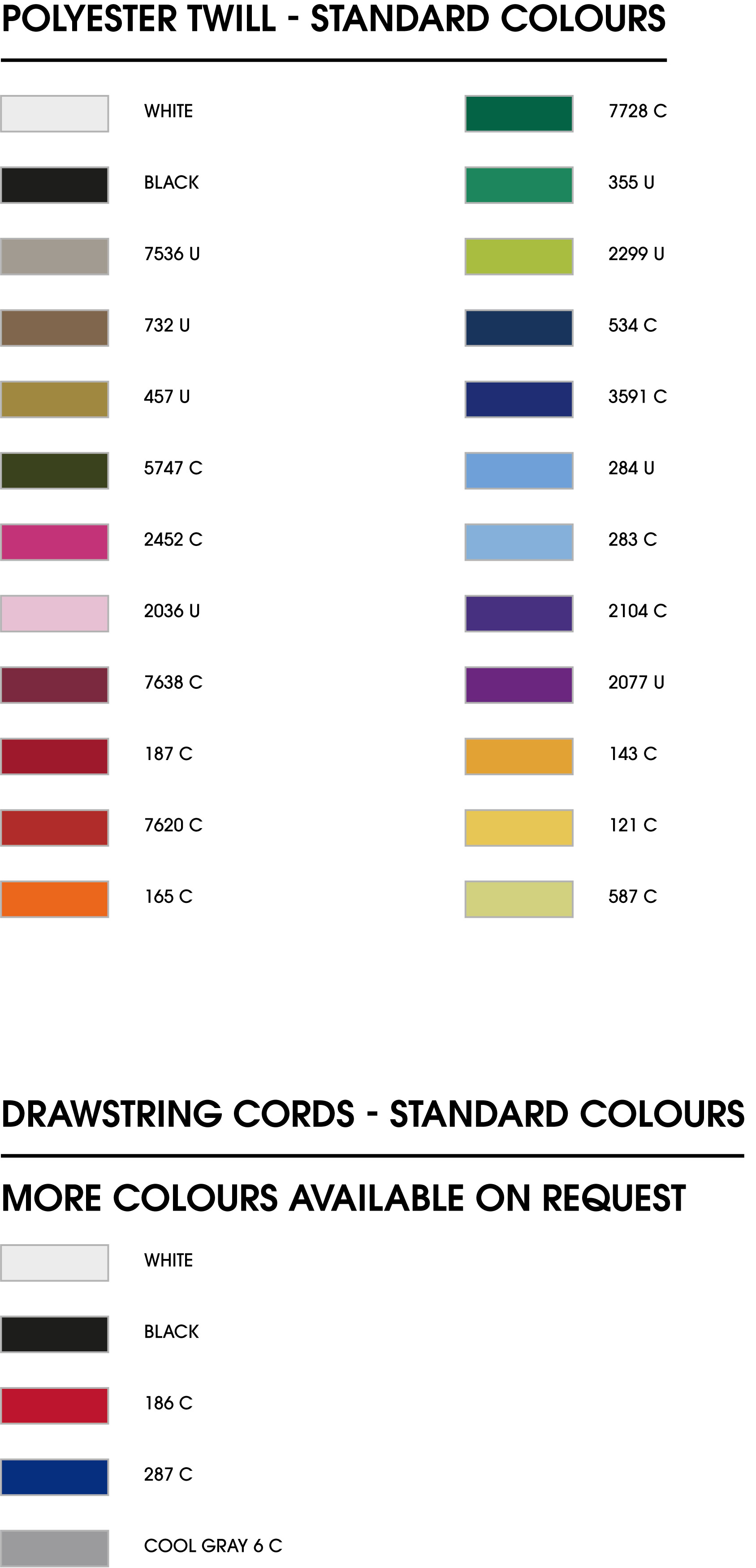Batoh se šňůrkou z odolného 100% keprového polyesteru 150D x 300D. Vyberte si jednu ze základních barev pro batoh a pro šňůrku.
