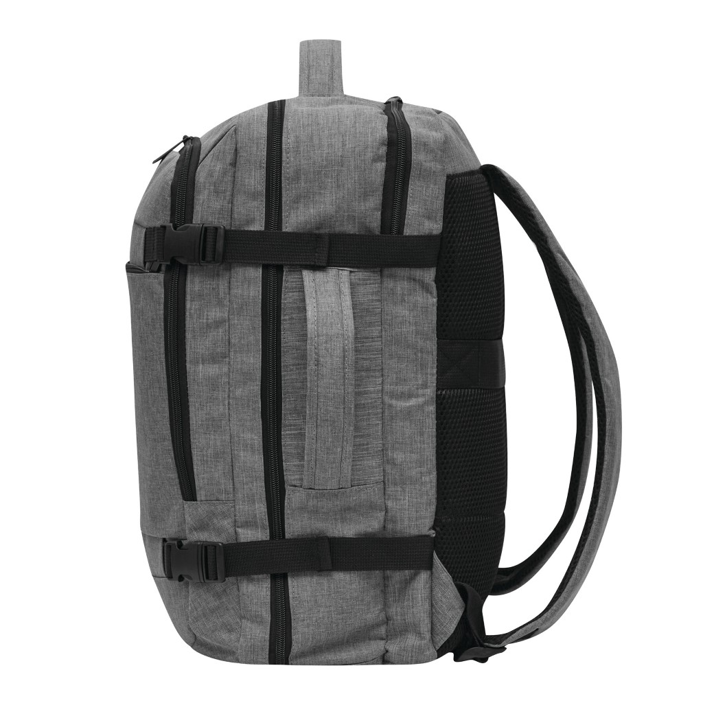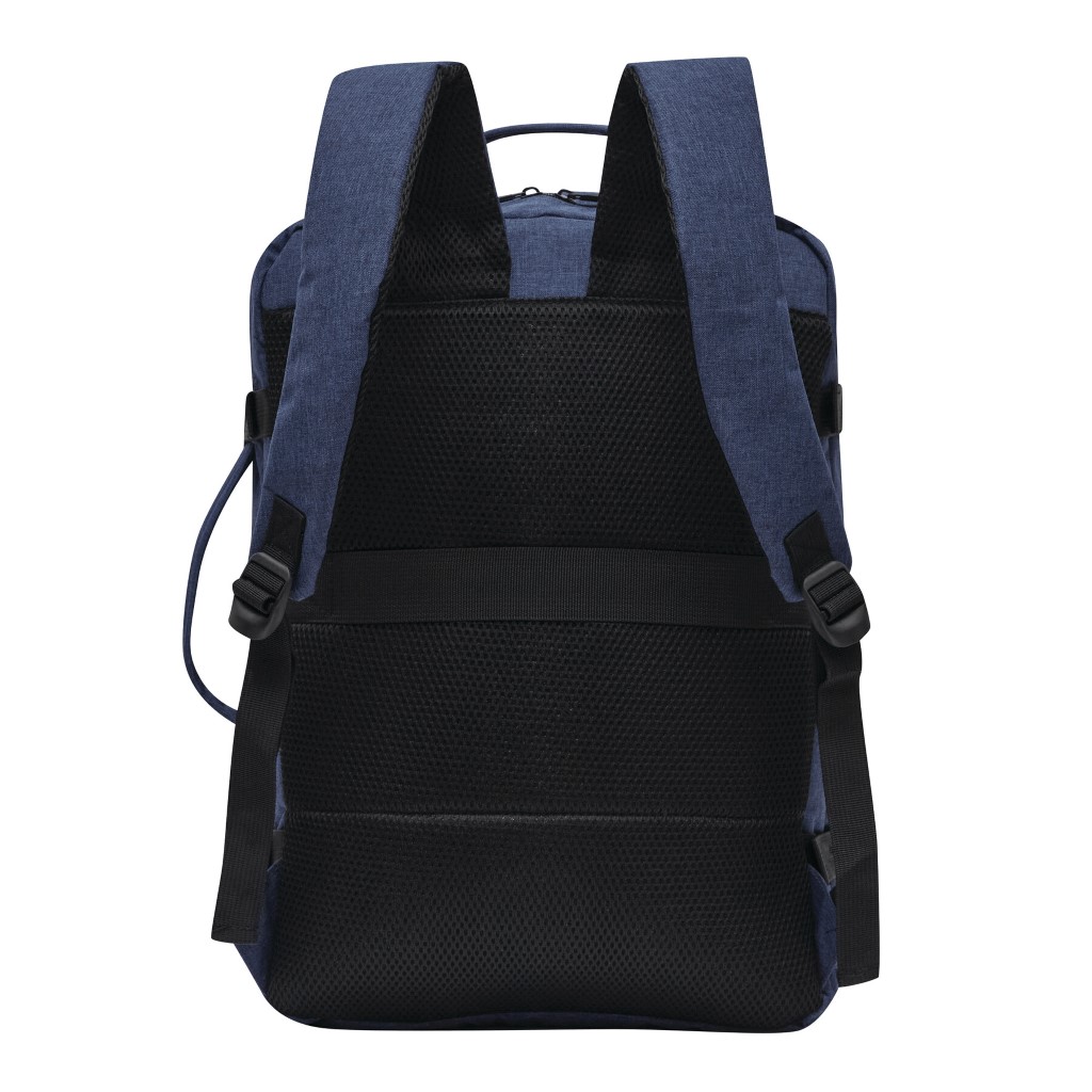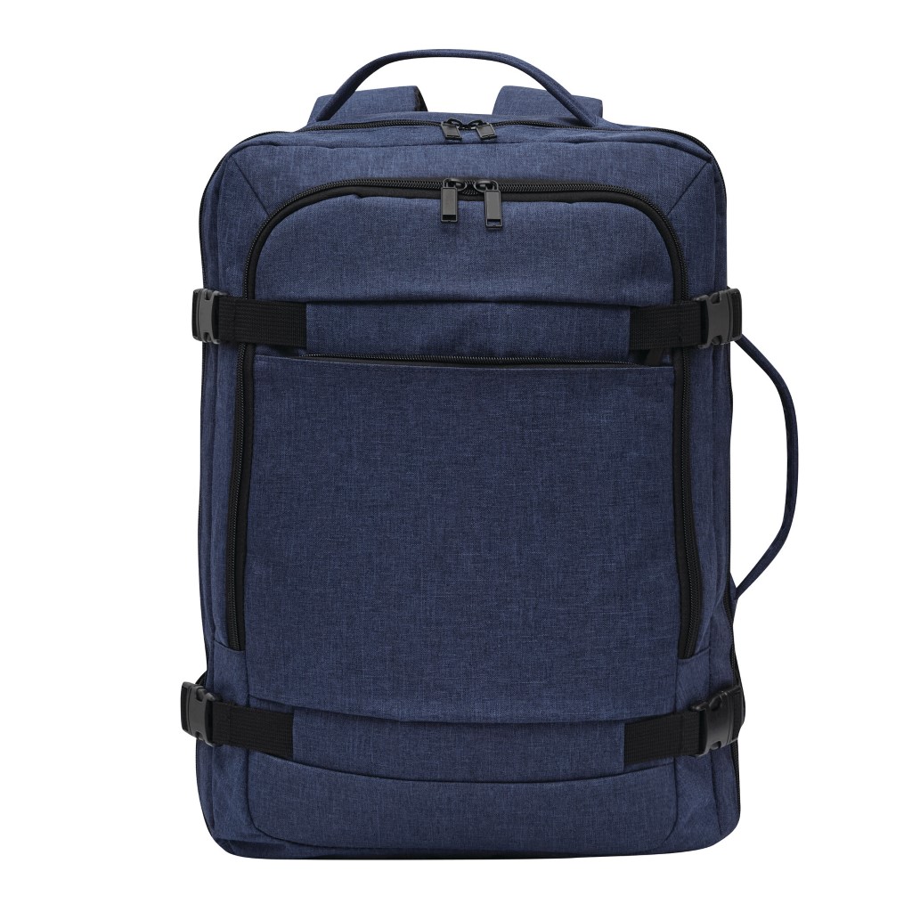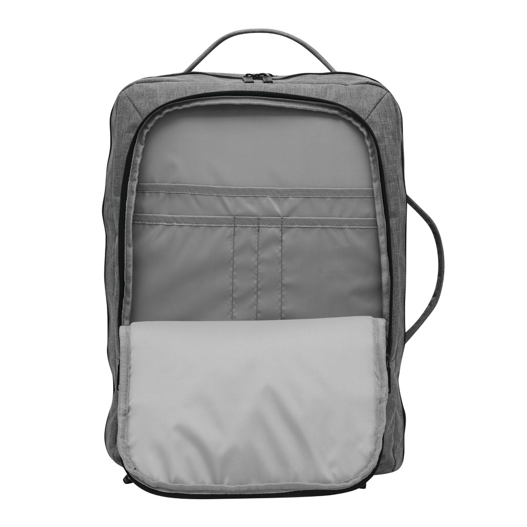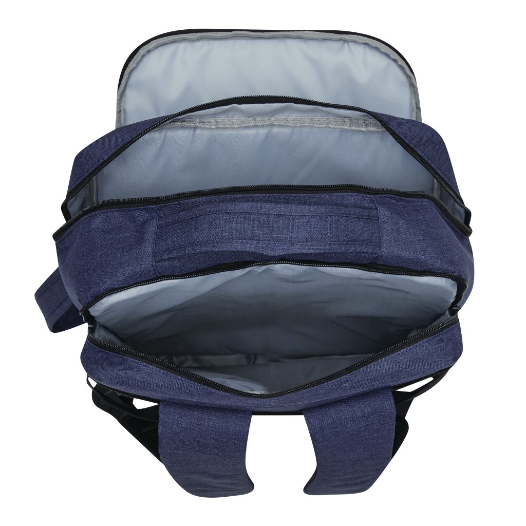 Batoh STEWARD: 2 přední přihrádky na zip, jedna s organizérem (3 zasouvací kapsy, 2 poutka na tužky), 1 velká polstrovaná hlavní přihrádka s balicím popruhem a zipem, 1 polstrovaná přihrádka na notebook se zipem, 1 vyztužené horní a boční madlo, polstrované ergonomické ramenní popruhy a polstrovaný zádový panel s pouzdrem na kolečkách, 2 kompresní popruhy se zapínáním na patentky na každé straně.