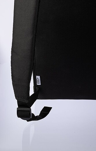 Polyesterový voděodolný rPET batoh z Oxford tkaniny s plně plochou přední stranou. Batoh má kapsu na notebook (15 palců) a uvnitř síťovanou kapsu s nastavitelnými popruhy. Obsahuje PU smyčku a PU magnet. Materiál: RPET. Rozměry: 29 x 9 x 43 cm