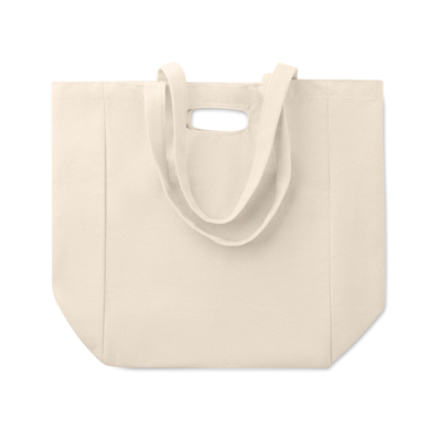 Nákupní taška s vyříznutými držadly a dlouhými držadly. Velikost: 30(š)x16(h)x40(v)cm. Dlouhé rukojeti 60x2,5cm. Základní přírodní barva. Upozorňujeme, že není možné kombinovat sítotisk a digitálně vytištěné vzory. Možnost volby tloušťky materiálu: