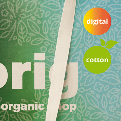 Bavlněná taška s popruhem přes rameno. Rozměry tašky: 38x40cm; Ramenní popruh: 118 x 2,5 cm. Upozorňujeme, že není možné kombinovat sítotisk a digitálně vytištěné vzory. Základní barva přírodní (bambus bílá).