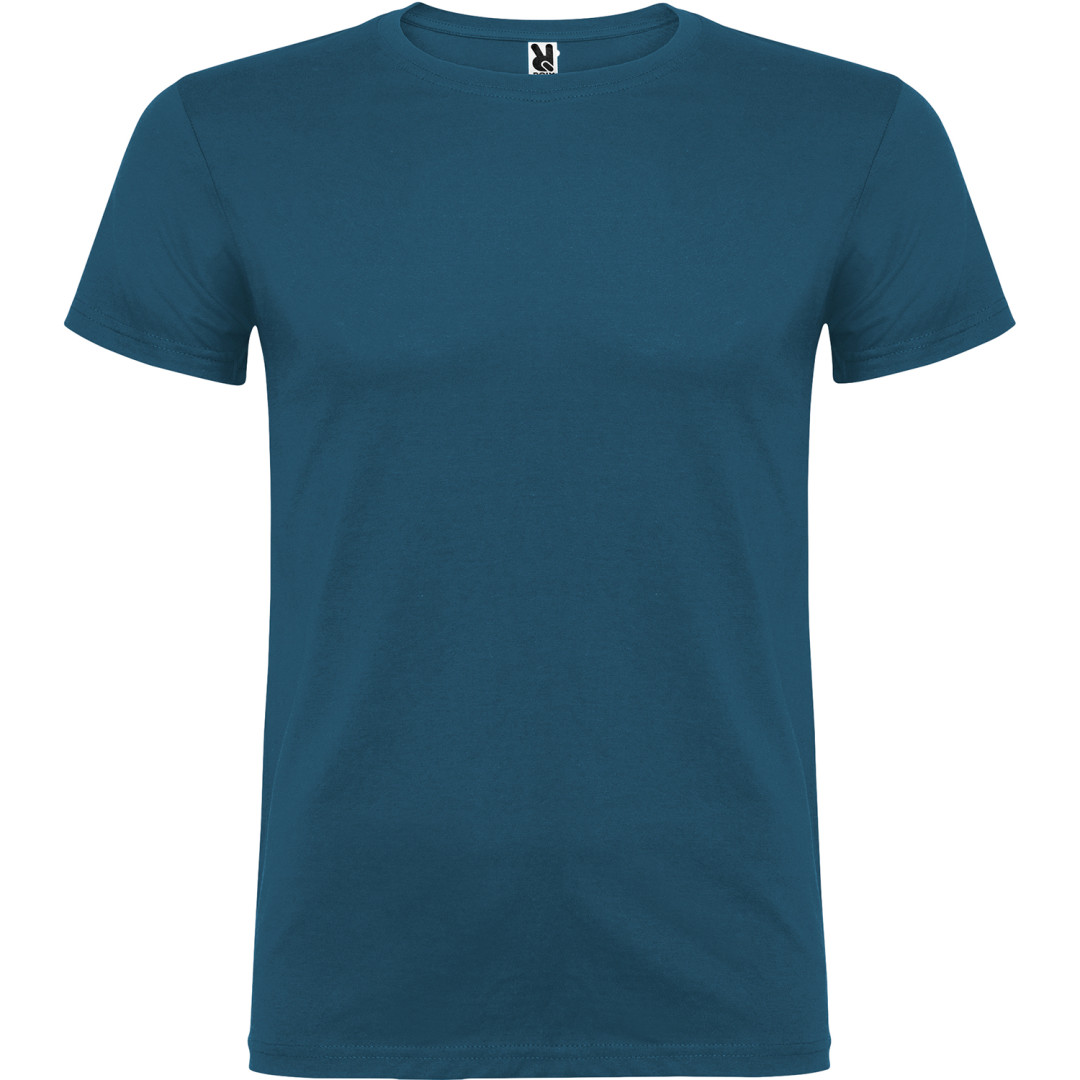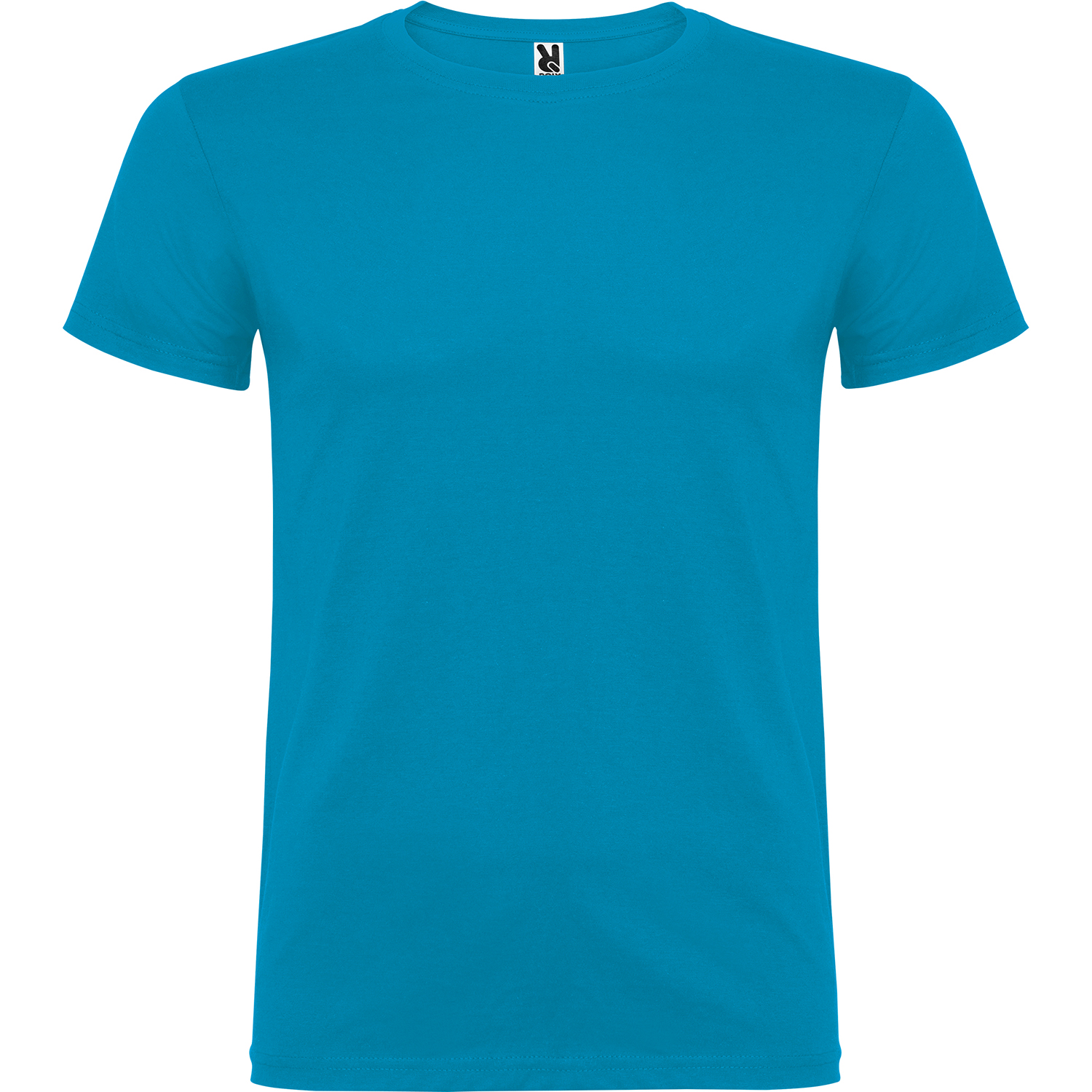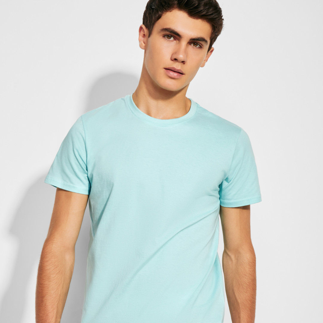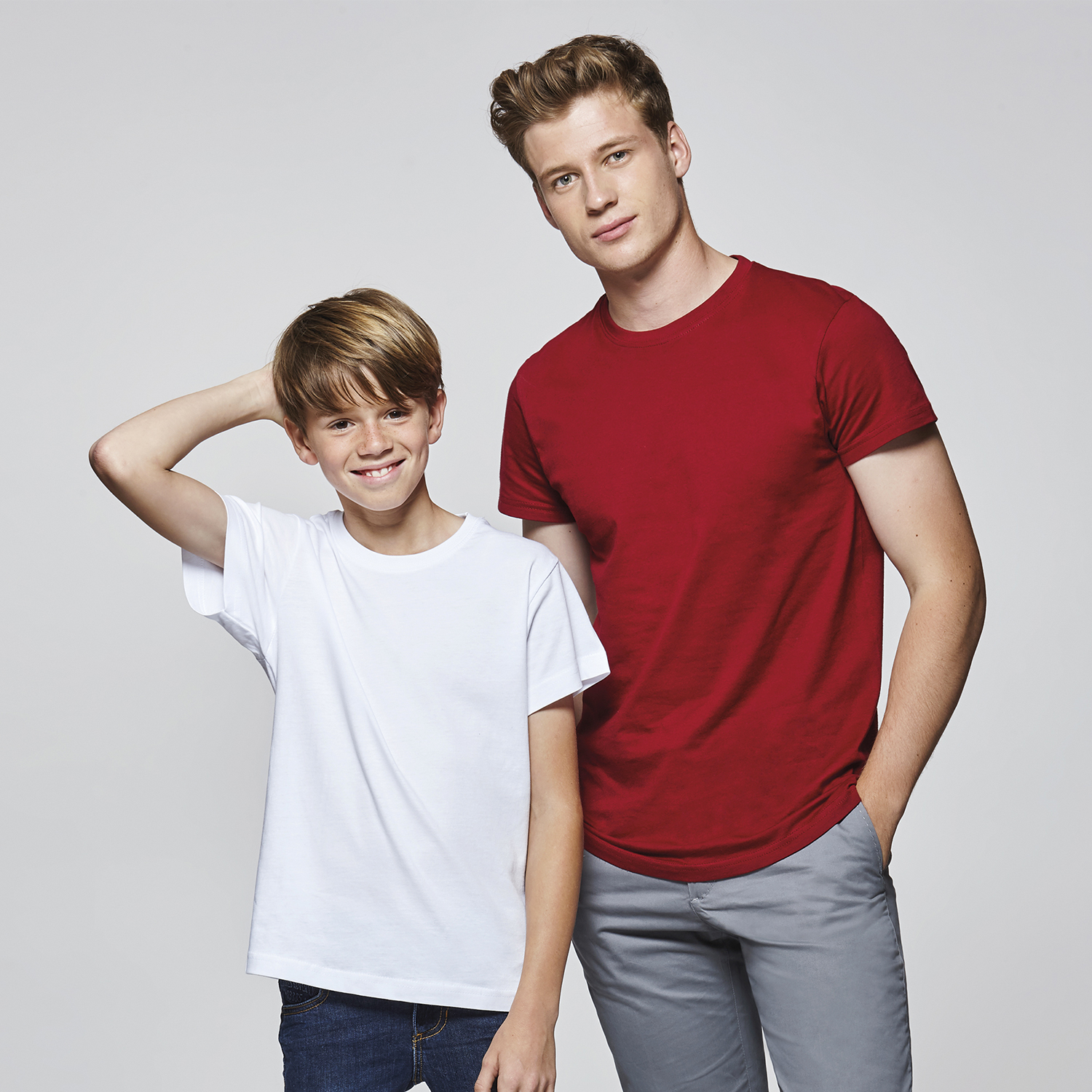 Tričko s krátkým rukávem a s dvouvrstvým výstřihem z elastanu, vyrobené z trubicové tkaniny pro dospělé. Zesílené kryté švy v límci. Odnímatelný štítek. Model měří 190 cm a má na sobě velikost L. Jednolícní žerzej 100% Bavlna, 155 g/m2.