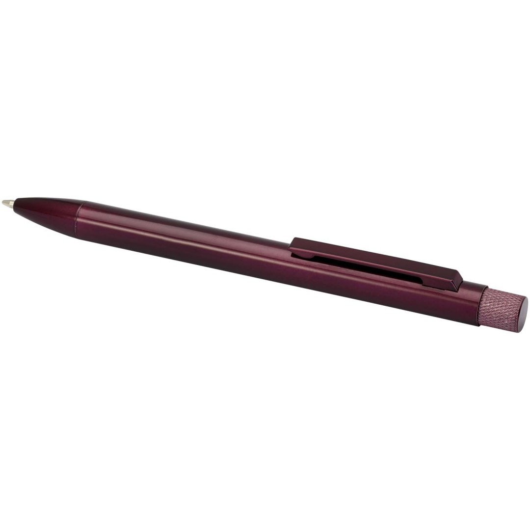 Kuličkové pero s barevným nástřikem. Tlačítko a hrot jsou vyrobeny z mosazi, tělo z recyklované mosazi a spona ze železa. Barva inkoustu: Modrá. Délka psaní: 1000 metrů. Rozměr hrotu: 1,0 mm. Dodáváno v dárkové krabičce.