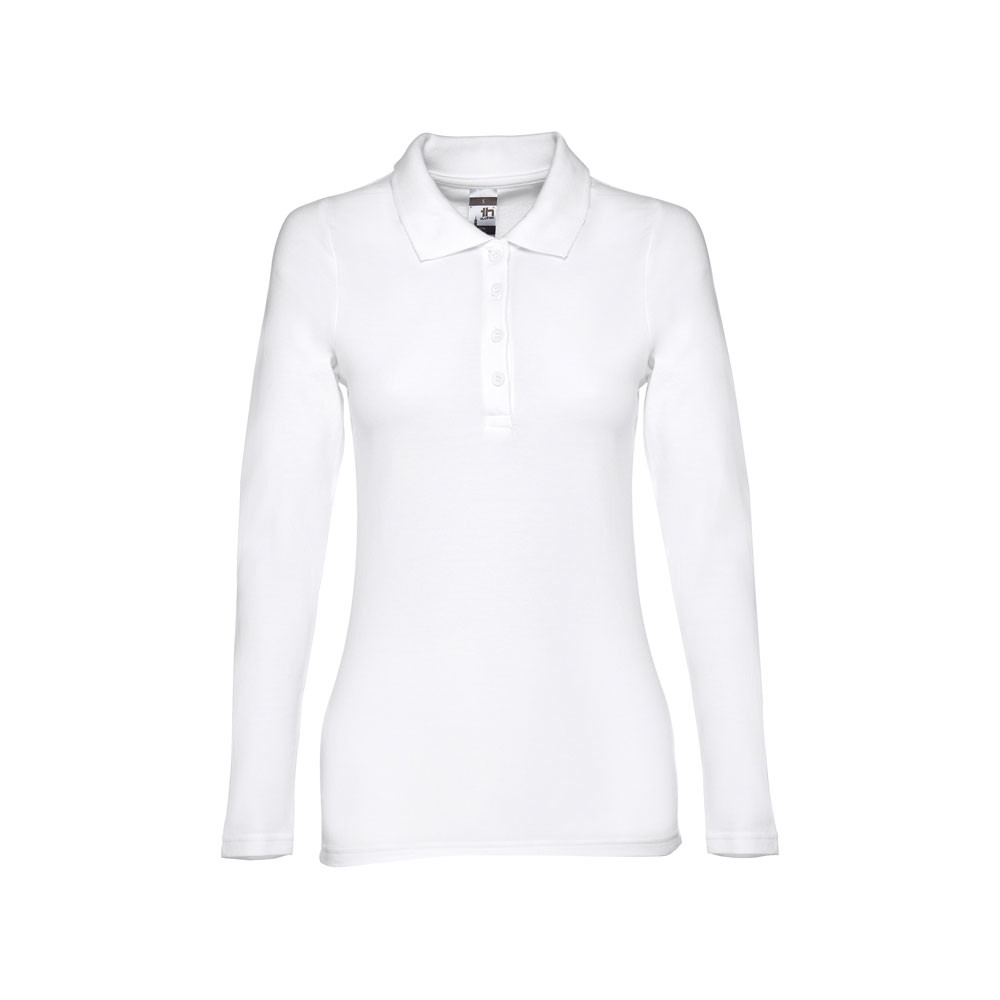 Dámská polokošile s dlouhým rukávem ze 100% bavlněného piké (210 g/m²). Žebrovaný límec a rukávy, žebrovaná výztuž na límci a vyztužená léga se 4 barevnými knoflíky. Spodní část s bočními rozparky. Náhradní knoflík ve vnitřním švu. Střiženo a sešito.