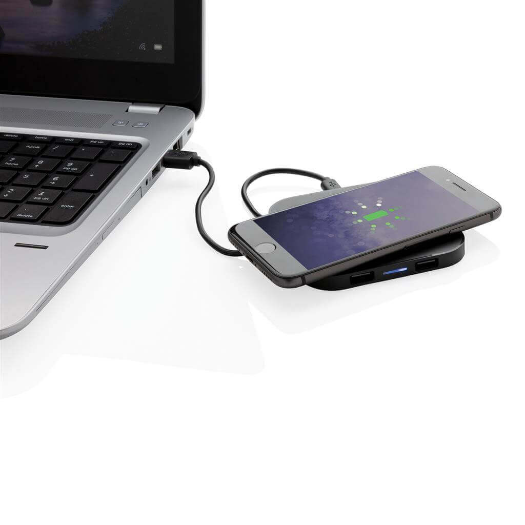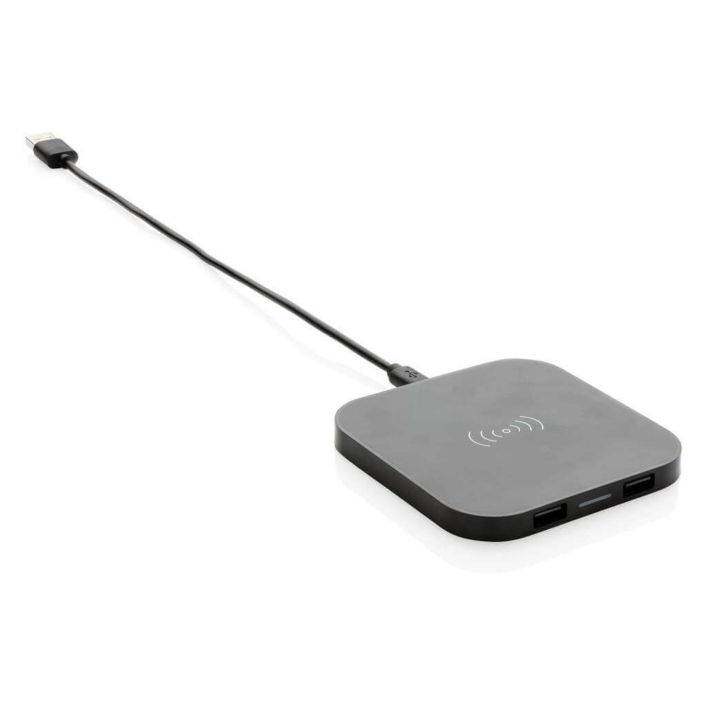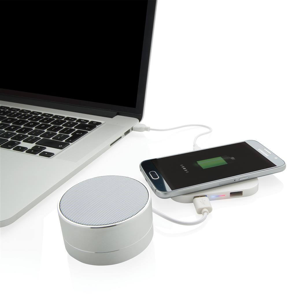 Bezdrátová nabíječka s výkonem 5W vhodná pro nabíjení telefonů podporujících QI jako jsou nejnovější generace Android, iPhone 8 a výše. Díky 2 USB výstupům je možné nabíjet i jakákoliv jiná zařízení nepodporujících QI. Vyrobeno z ABS. Vhodná pouze pro nabíjení, nikoli pro datový přenos. Vstup: 5V/1A. Výstup USB: 5V/1A. Bezdrátový výstup: 5V/1A 5W.