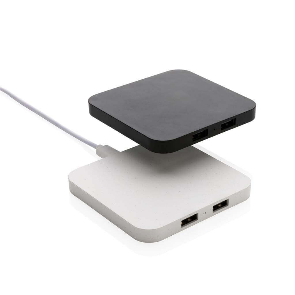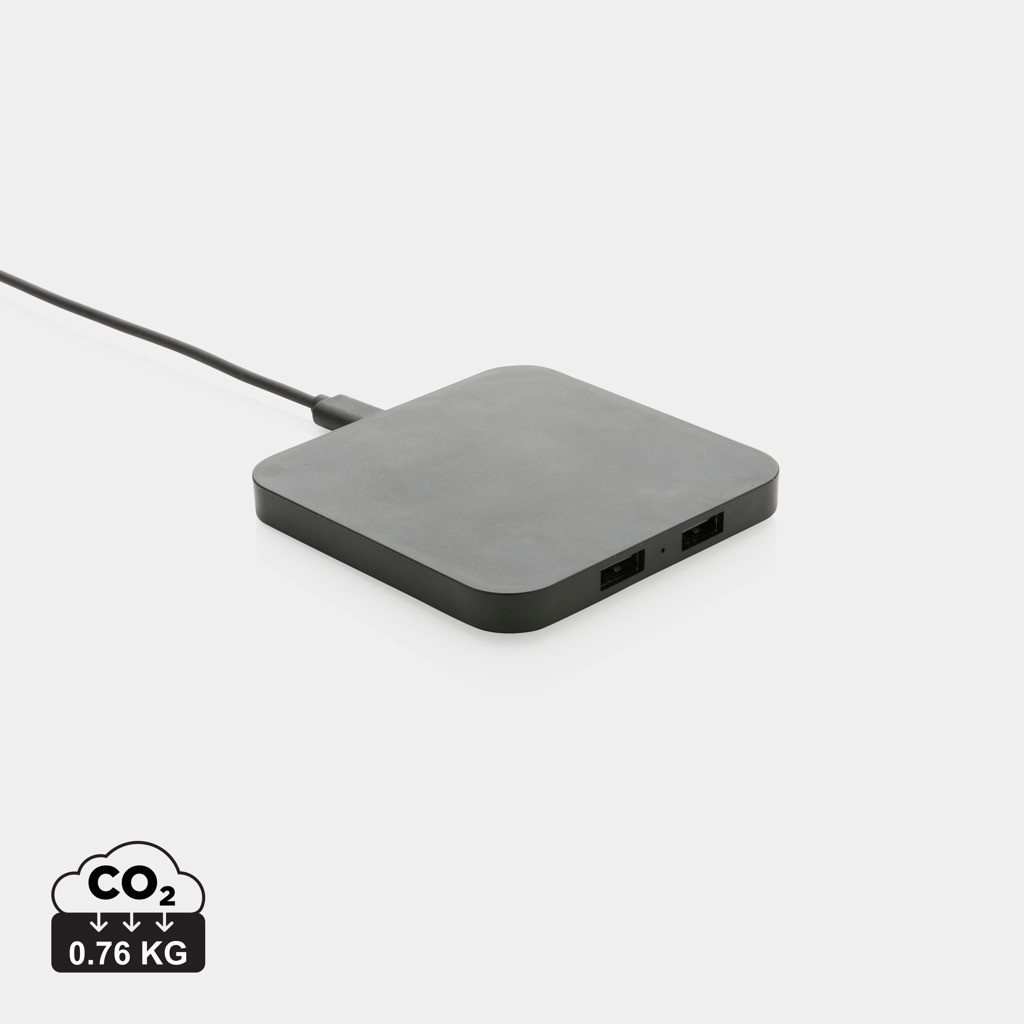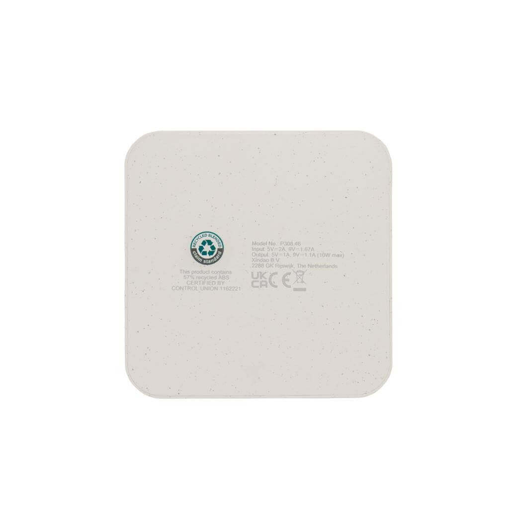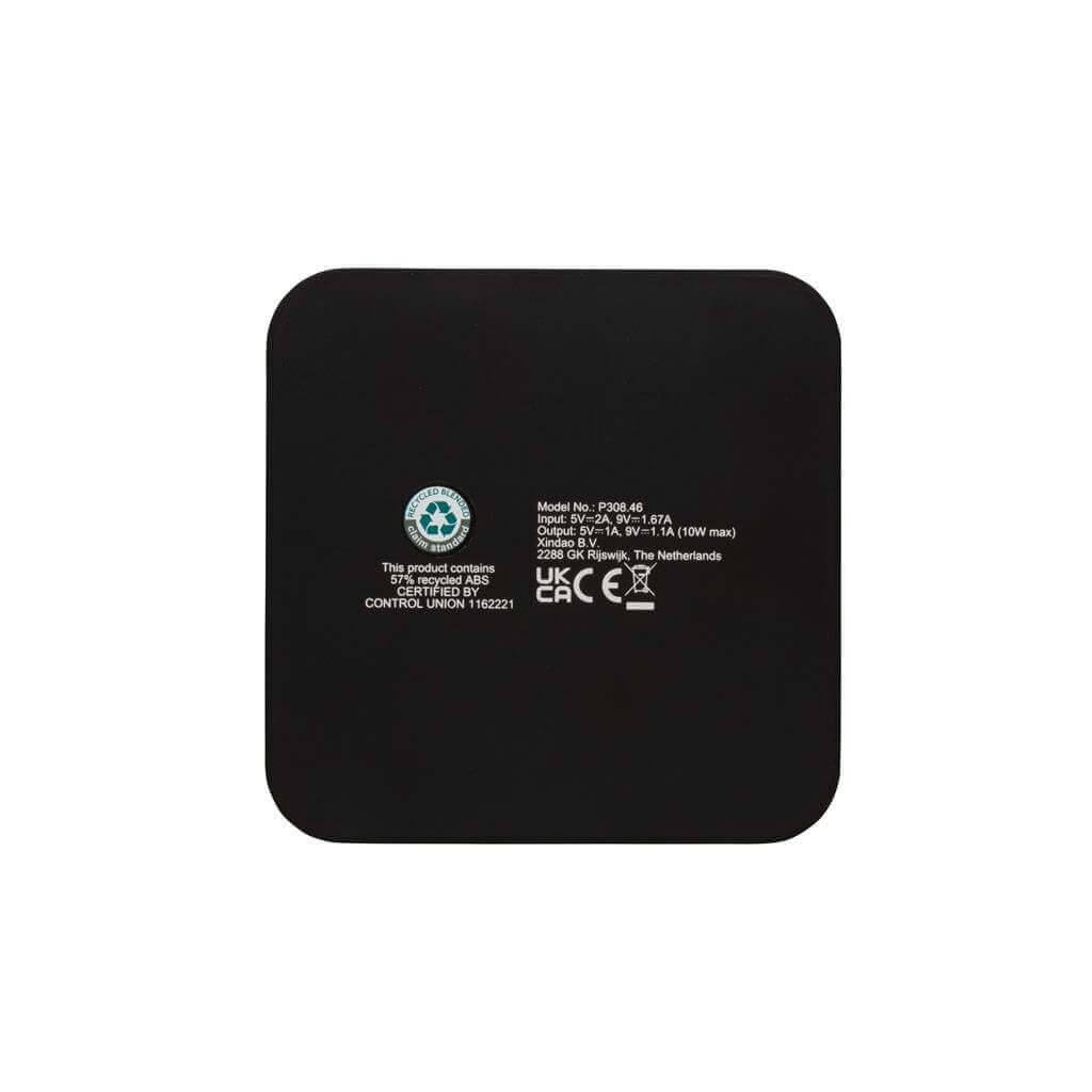 Bezdrátová nabíječka s výkonem 10 W a 2 USB výstupy. Vyrobená z RCS recyklovaného ABS plastu. RCS (Recycled Claim Standard) je globální standard, který umožňuje ověřit použití recyklovaného materiálu v produktu napříč celým dodavatelským řetězcem. Celkový podíl recyklátu dle váhy produktu: 57 %. Včetně 120 cm USB C nabíjecího kabelu z RCS recyklovaného TPE. Kompatibilní se všemi zařízeními podporujícími Qi jako jsou nejnovější generace Android a iPhone 8 a výše. Vstup USB C: 5V/2A, 9V/1,67A. Bezdrátový výstup: 5V/1A, 9V/1,1A 10 W. Baleno v FSC® dárkové krabičce.