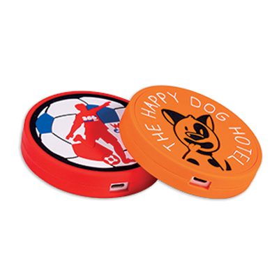Bezdrátová PVC nabíječka kulatého tvaru s personalizovaným designem na 1 straně. Minimální velikost: 75 x 75 x 15,5 mm / Maximální velikost: 140 x 80 x 15,5 mm. Vstup: DC 5V/2A (max.). Výstup: DC 5V/1A (max.). Design se 3 až 5 barvami.