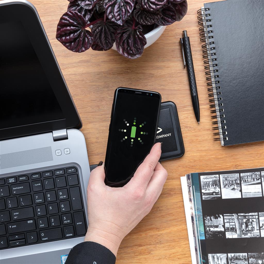 Nabíjejte svá mobilní zařízení bez jakýchkoliv kabelů. Jednoduše položte telefon na nabíjecí podložku, oznámení vás ihned bude informovat o průběhu nabíjení. Nabíjecí podložka umožňuje dekoraci vlastním logem, které se po připojení rozsvítí. Bezdrátové nabíjení je kompatibilní s nejnovější Android generací, dále s iPhone 8 a výše. Vstup: 5V/2A. Bezdrátový výstup: 5W