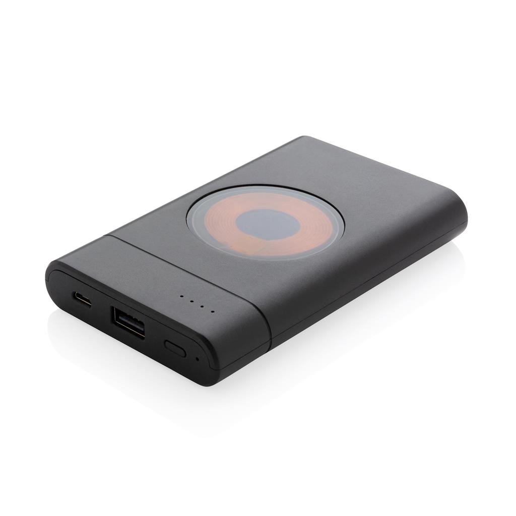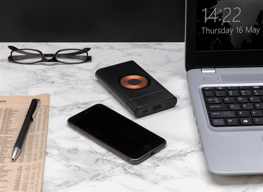 Moderní powerbanka vyrobená z ABS se stylovým průhledným designem. Kvalitní lithium polymerová baterie řady A s kapacitou 8 000 mAh plně nabije mobilní telefon 3-4x. Světelné indikátory stupně nabití. Powerbanka podporuje 5W bezdrátové nabíjení i klasické nabíjení skrze USB port. Bezdrátové nabíjení je kompatibilní se všemi telefony podporujícími QI, jako jsou nejnovější generace Android, iPhone 8 a výše. Vstup 5V/2A. USB výstup: 5V/2A; Bezdrátový výstup: 5V/1A 5W. Ochranný vzor® 1 baterií typu Li-poly súčást balení.