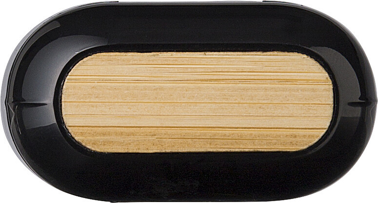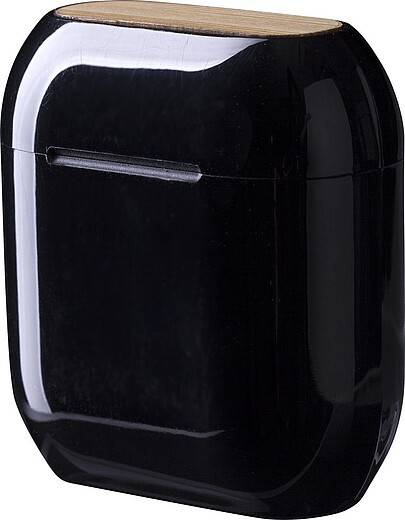 Bezdrátová sluchátka ABS (5.1) s bambusovým detailem. Sluchátka 30 mAh, nabíjecí stanice 200 mAh. Plně nabitá za 1 hodinu, USB-C nabíječka. Výdrž baterie: 6 hodin přehrávání hudby, 4 hodiny volání. Jednotlivě baleno v dárkové krabičce.