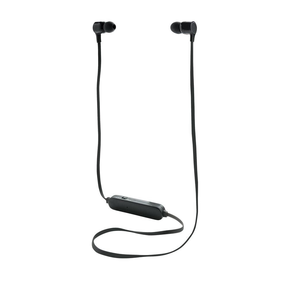 Bezdrátová špuntová sluchátka s TPE kabelem pro poslech hudby bez kabelů. S 55mAh baterií, která umožňuje přehrávání až po dobu 3 hodin. S rozhraním BT 4.0 pro hladké připojení na vzdálenost až 10 metrů. Dodáváno s 3 ušními nástavci: malé, střední a velké. Včetně micro USB kabelu. 1 baterií typu Li-poly v balení