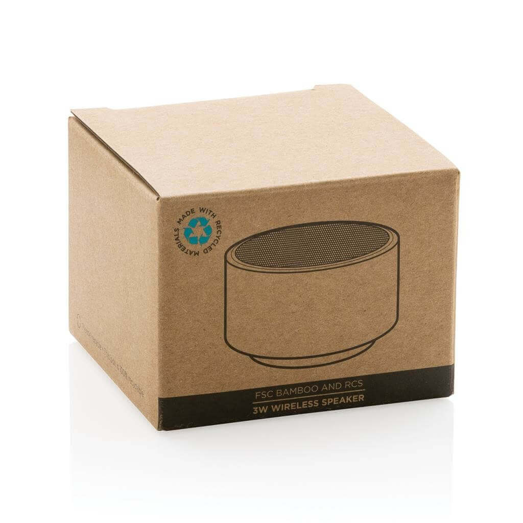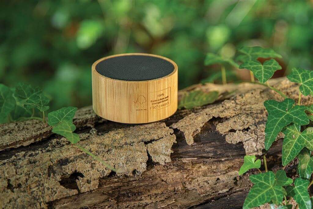 Bezdrátový reproduktor s výkonem 3W vyrobený z FSC® bambusu a RCS recyklovaného ABS plastu. RCS (Recycled Claim Standard) je globální standard, který umožňuje ověřit použití recyklovaného materiálu v produktu napříč celým dodavatelským řetězcem. Celkový podíl recyklátu dle váhy produktu: 16 %. Integrované světlo na spodní části. Zabudovaná baterie s kapacitou 300 mAh pro poslech po dobu až 3 hodin na jedno nabití. BT 4.1 pro hladké bezdrátové připojení na vzdálenost až 10m. Mikrofon pro telefonování. Včetně nabíjecího kabelu z RCS recyklovaného TPE. Baleno v FSC® dárkové krabičce. Produkt i příslušenství bez PVC. 1 baterií typu Li-poly súčasťou balenia.