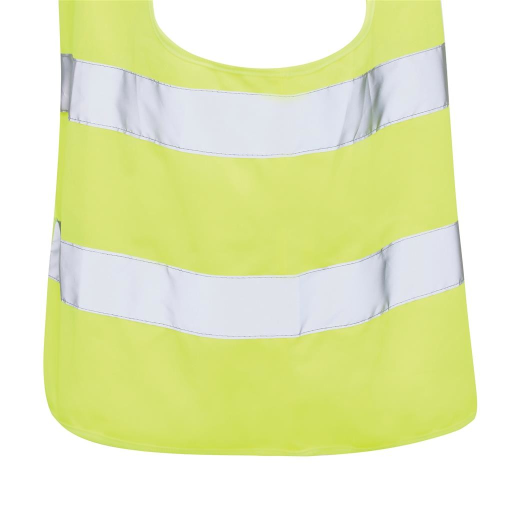 Vysoce viditelná bezpečnostní vesta v unisex provedení, pro výšky 164-198 cm. Velká plocha vhodná pro potisk na přední i zadní straně. Fluorescentní pozadí s reflexními pásy, které zajišťují soulad s normou EN ISO 20471:2013+A1:2016. Označeno symbolem CE, stvrzujícím soulad s nařízením EU 2016/425/EU, které vestu klasifikuje jako osobní ochranný prostředek kategorie II. Vyrobené z GRS recyklovaného PET. GRS (Global Recycle Standard) je globální standard, který umožňuje ověřit použití recyklovaného materiálu v produktu napříč celým dodavatelským řetězcem. Celkový podíl recyklátu dle váhy produktu: 67 %.