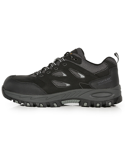 Odpovídá normě EN20345: 2011 - S1P | Voděodolný svršek z PU nubuku a síťoviny s polstrovanou ochranou kotníku | Ocelová špička a mezipodešev proti proniknutí | Tvarovaná pohodlná stélka EVA a odolná gumová podrážka odolná proti oleji.
