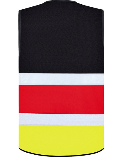 Bezpečnost a pocit sounáležitosti v jednom: vysoce viditelná vesta v duchu národů | Optimální viditelnost díky dvěma reflexním proužkům a zářivým barvám příslušných státních vlajek | Nápadný společník pro delegace, sportovní akce a národní i mezinárodní události | Dva suché zipy pro snadné oblékání a svlékání | K dispozici v praktických dvojích velikostech | Odlepovací štítek | Certifikováno podle EN 17353. 120 g/m².