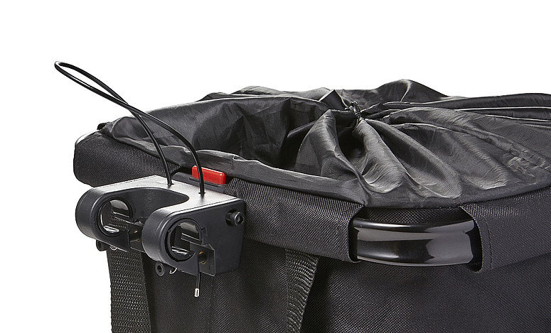 Košík na kola s kapacitou 20 litrů. Včetně vodoodpudivého potahu se stahovací šňůrkou a zátkami. Extra přední část na zip. Na vnitřní straně je další komora spojená se suchým zipem. S reflexními detaily pro lepší viditelnost