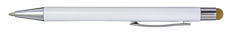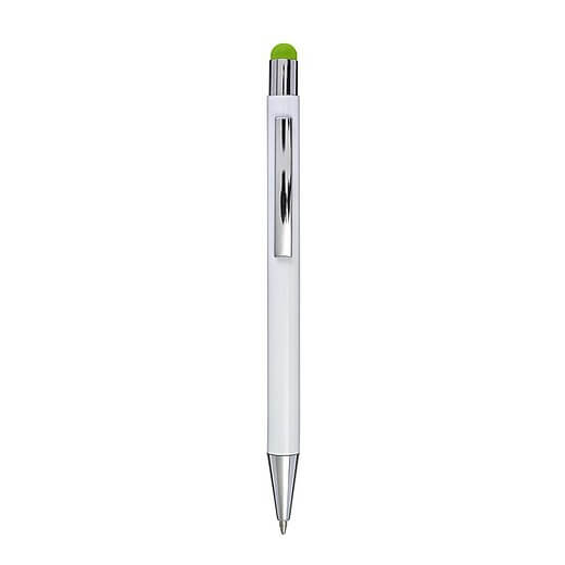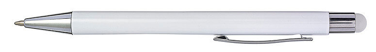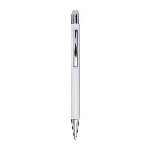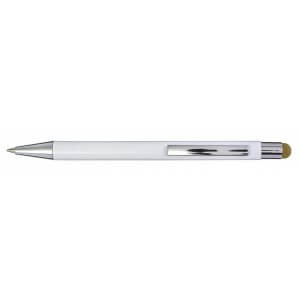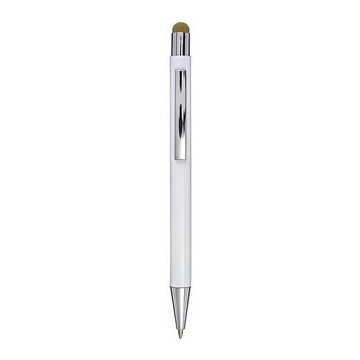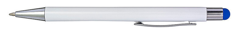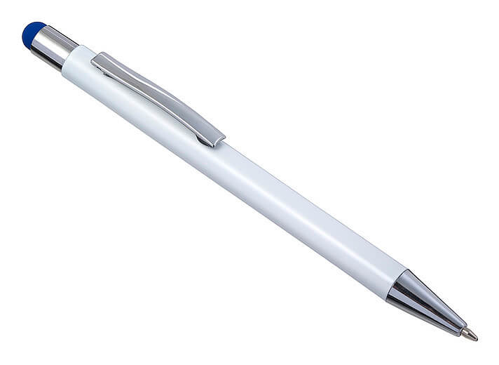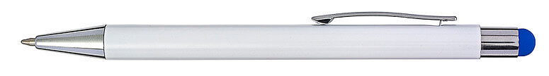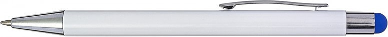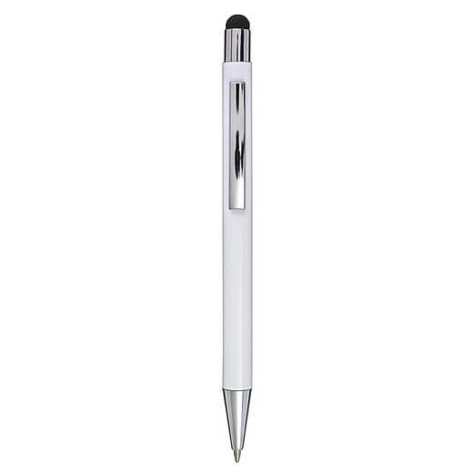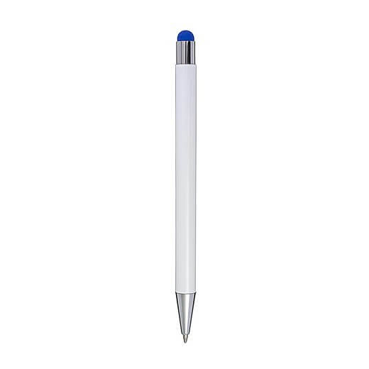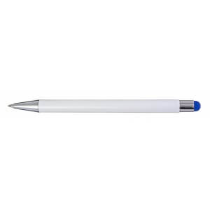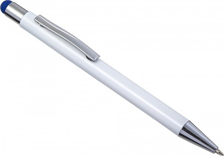 Hliníkové a ABS kuličkové pero s pryžovou špičkou pro kapacitní obrazovky. Když je pero laserováno, otisk se zobrazí barevně. Modrý inkoust.