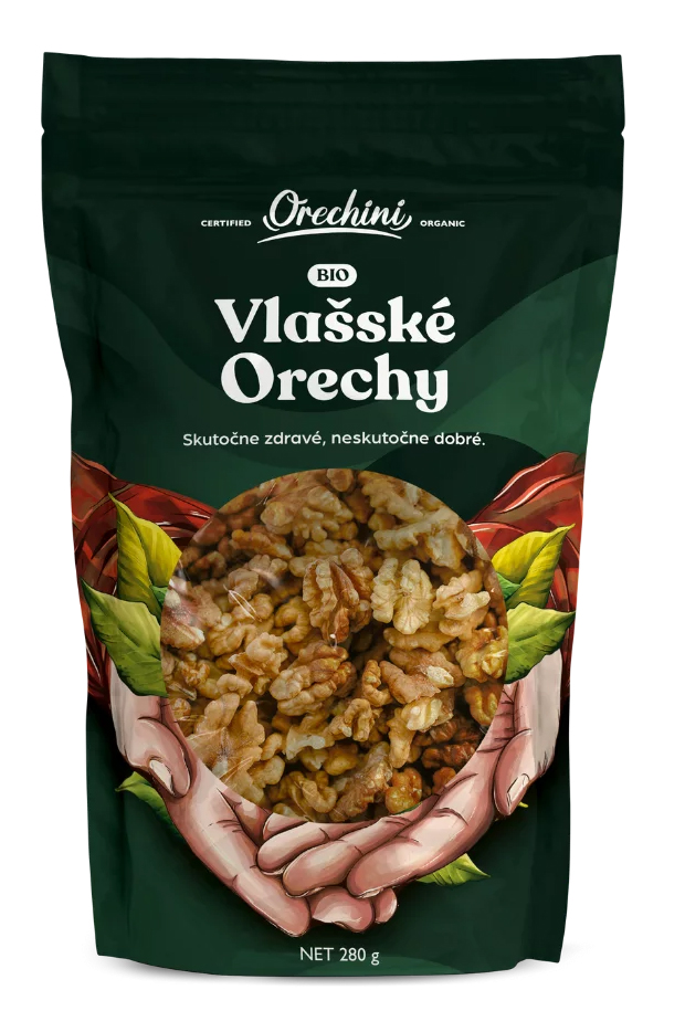 BIO vlašské ořechy Orechini jsou ideální volbou pro zdravé mlsání i pečení. 60% balení tvoří celé poloviny – krásně se hodí ke zdobení dezertů, menší kousky využijete do granoly, kaše nebo salátů. Pěstované a balené přímo na naší farmě, bohaté na vitamín B, omega-3 a omega-6. Podporují paměť, srdce a pomáhají snižovat cholesterol. Uchováváno v chlazeném skladu, 100% český produkt v praktickém doypack sáčku. 280 g