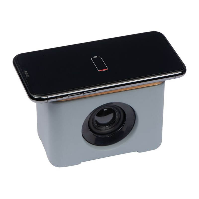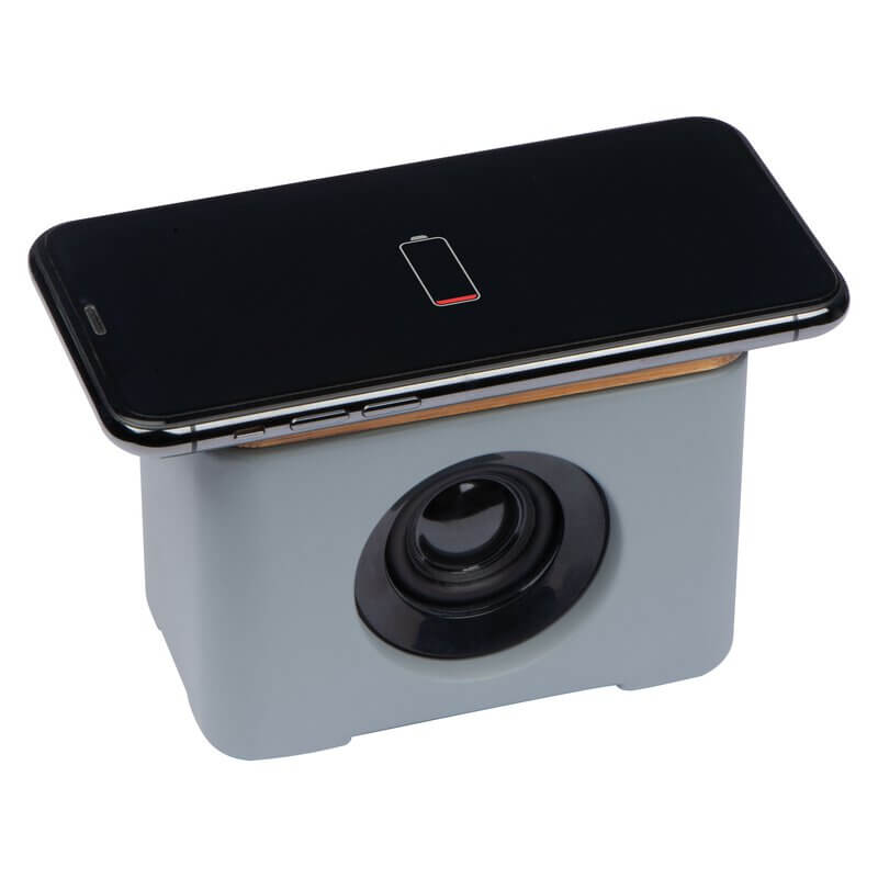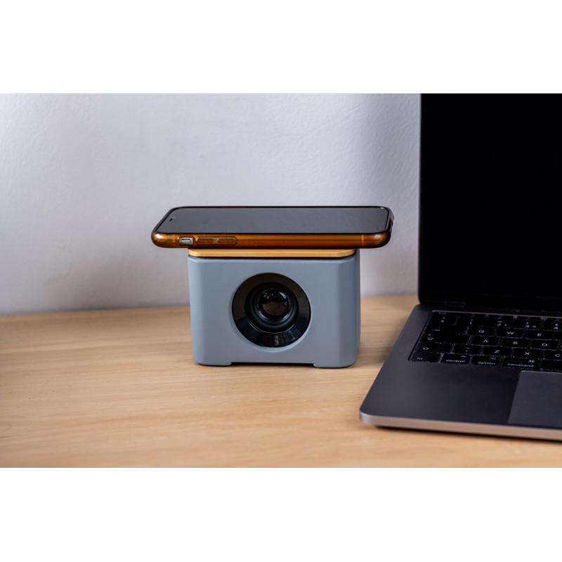 Masivní Bluetooth reproduktor se skvělým zvukem a povrchem z vápencového cementu v kombinaci s bambusem, který zároveň slouží jako bezdrátová nabíječka. Přírodní materiál může způsobit odlišnosti mezi jednotlivými kusy v povrchovém vzorování a barvě. Způsob potisku tampónový potisk.