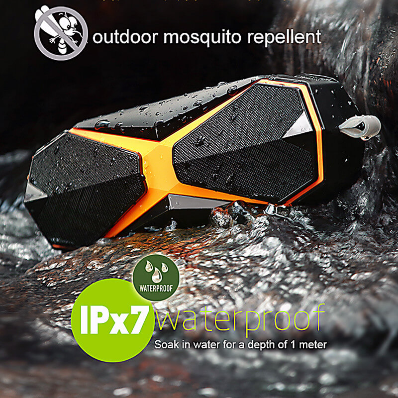 Chcete reproduktor, který od vás odežene komáry? Můžete ho mít a díky odolnosti proti vodě a prachu s ním klidně vyrazit na cesty. Povedený multifunkční Bluetooth reproduktor se bezdrátově spojí s vaším mobilním zařízením na vzdálenost až 10 metrů. Pro přehrávání hudby můžete využít také slot pro micro SD / TF kartu. Kapacita baterie je 1200 mAh. Multifunkční bezdrátový reproduktor odolá dešti i prachu. Velkou výhodou je ultrazvukový odpuzovač dotěrných komárů. Stylový design je dostupný v různých barvách i s možností vlastního potisku.