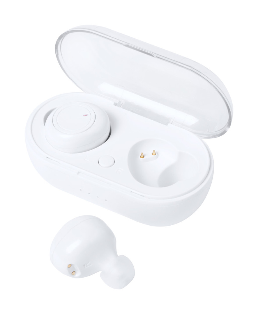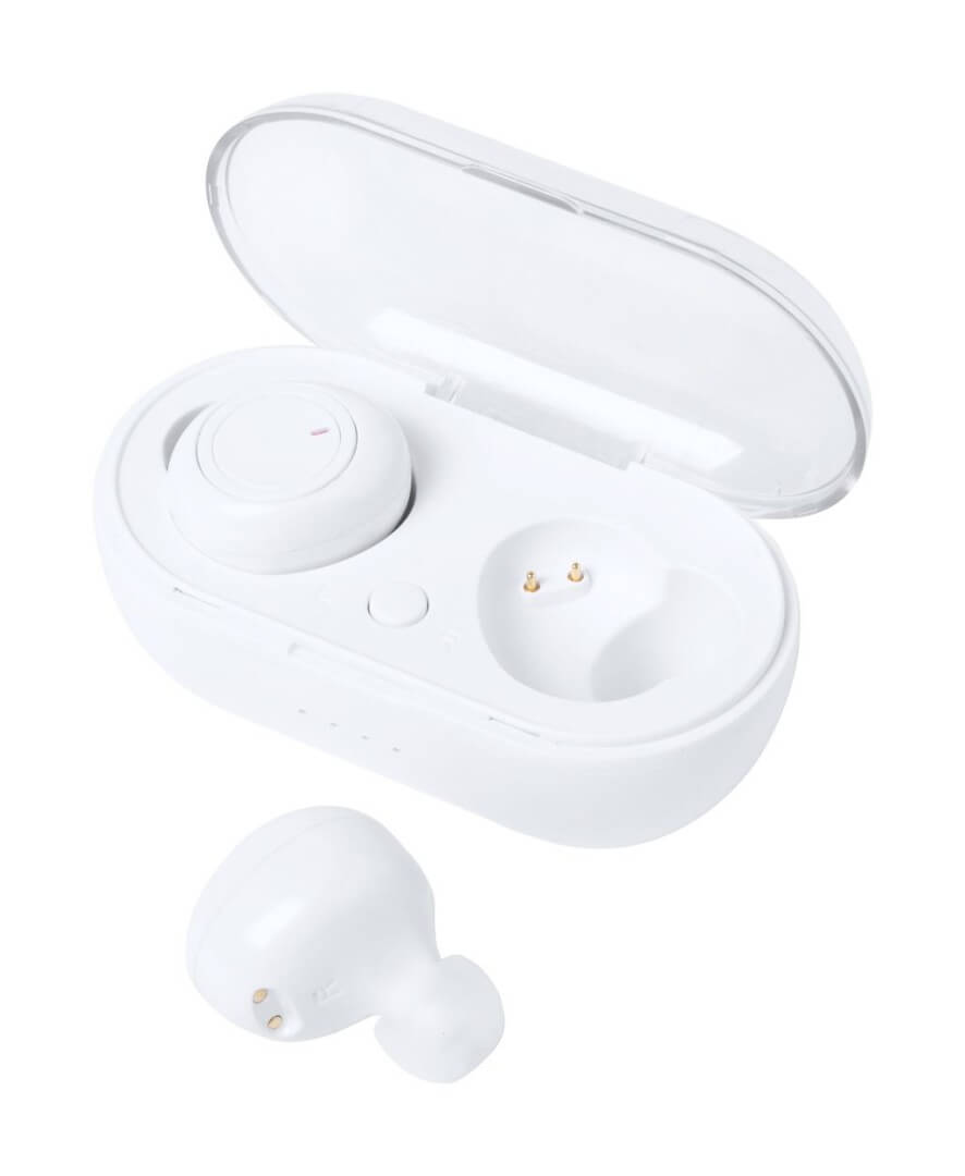 Bezdrátová bluetooth sluchátka s funkcí handsfree volání v plastové nabíjecí krabičce. Vč. USB nabíjecího kabelu.