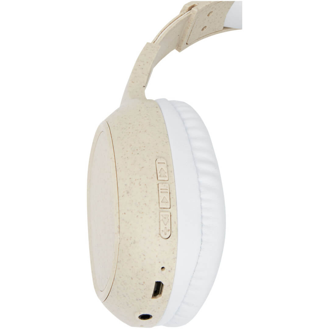 Pohodlná, lehká a odolná bezdrátová sluchátka s Bluetooth® 5.0 pro stabilní připojení a vestavěným mikrofonem pro příjem telefonních hovorů. Sluchátka jsou skládací a design přes uši poskytuje dokonalý zvukový zážitek. Vestavěná lithiová baterie s kapacitou 200 mAh umožňuje přehrávání po dobu až 4 hodiny a lze ji plně nabít za 2 hodiny. Provozní dosah až 10 metrů. Vyrobeno ze směsi pšeničné slámy a ABS plastu, což snižuje potřebu původních plastů. Dodává se v dárkové krabičce včetně návodu (krabička i návod jsou vyrobené z udržitelných materiálů).