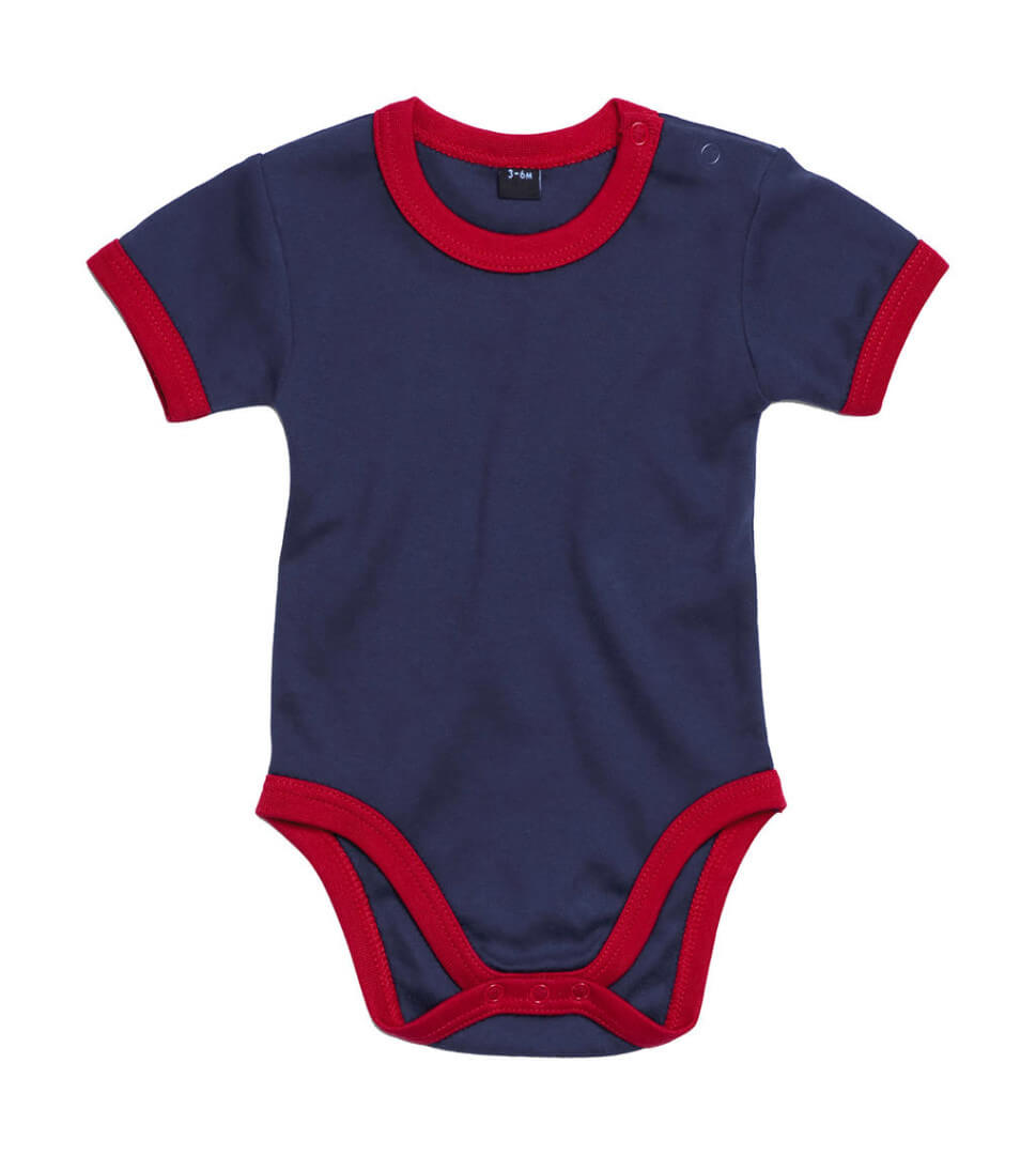 · Interlock · kontrastní lem kolem krku, na rukávech a okolo nožiček · zapínání na druky mezi nožičkami a na rameni · cvočky v odpovídající barvě