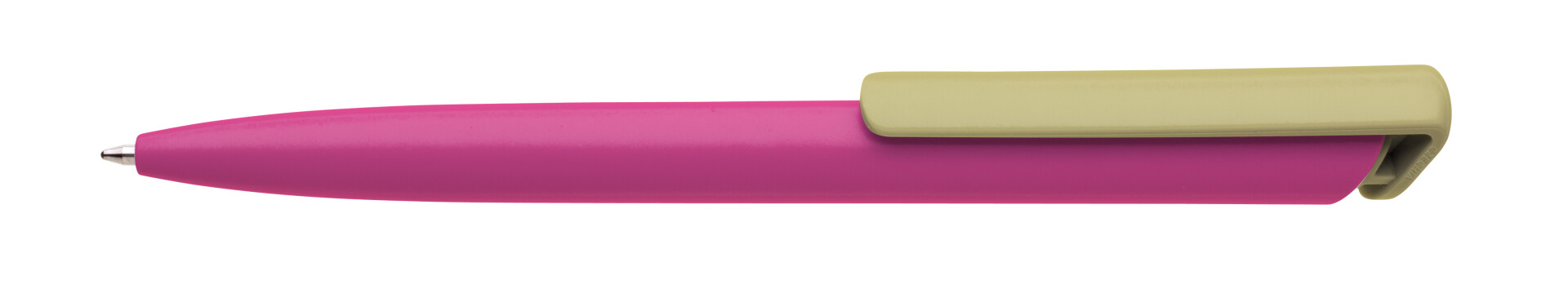 Pero BOIA v minimalistickém designu tmavě růžového oválného těla s dynamickým tvarem masivního klipu. Tělo i klip nabízí velký prostor pro označení logem zákazníka. Materiál plast, náplň velkoobsahová, píše modře. BOIA je vyráběna v České republice. Velkoobsahová