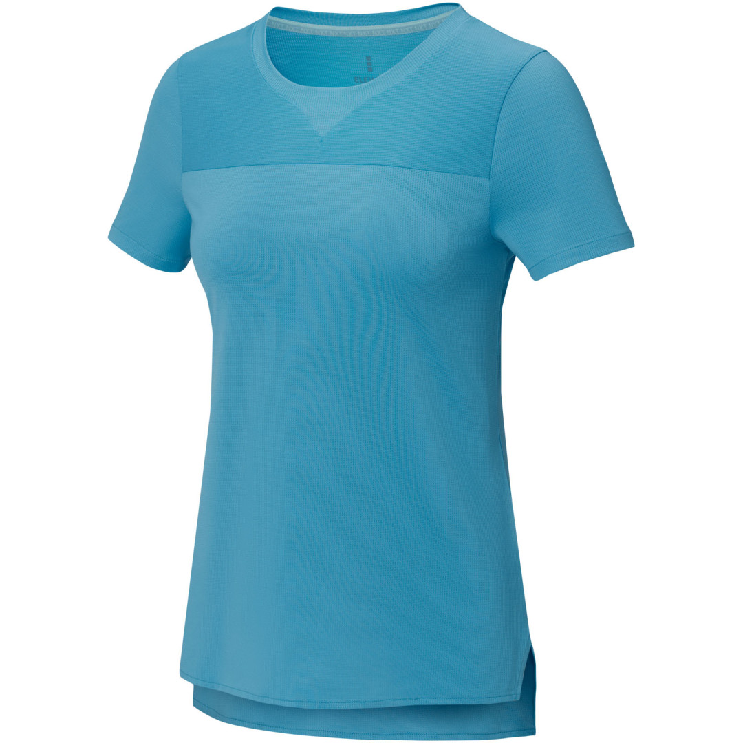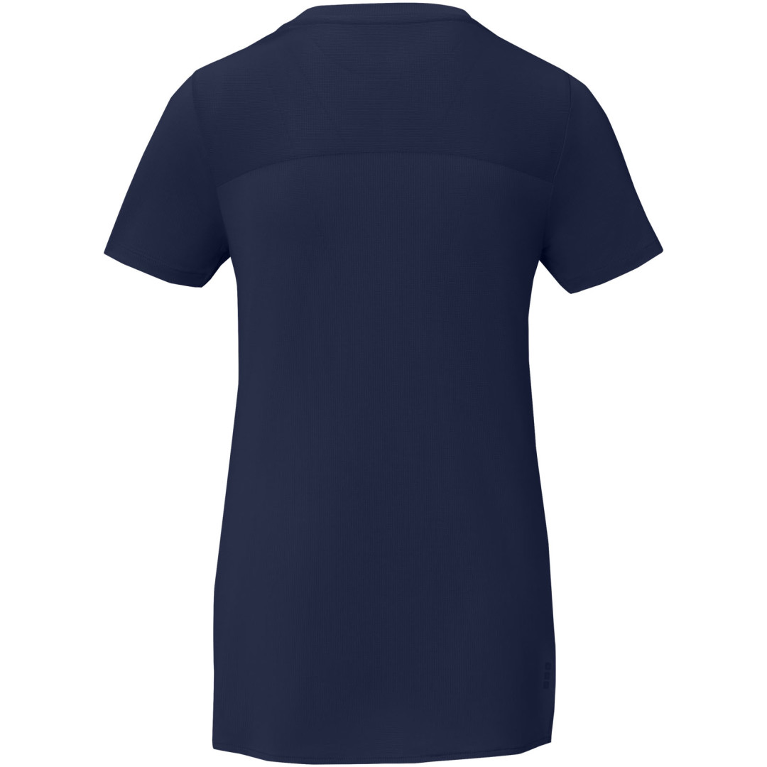 Udržitelné propagační oděvy. Kulatý výstřih s detailem ve tvaru V. Límec ve shodné tkanině. Boční rozparky. Prodloužený zadní díl. Dvoubarevná značková páska od ramene k rameni. Potisk štítku technologií heat transfer pro větší pohodlí.