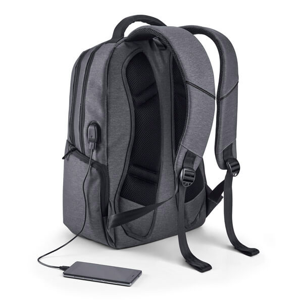 Vodotěsný batoh na notebook z nylonu 2Tone se 2 přihrádkami. Zadní část je podšitá, má vnitřní kapsu na zip a polstrovanou přepážku na notebook do velikosti 17"'. Přední přihrádka je podšitá a má několik vnitřních kapes. Batoh má 2 přední kapsy a 2 boční kapsy. Součástí je USB port a USB / micro USB kabel pro připojení k mobilním zařízením (přenosná baterie není součástí balení). Zadní část je polstrovaná a má polstrované opěrku zad a polstrované popruhy. Příslušenství není součástí.