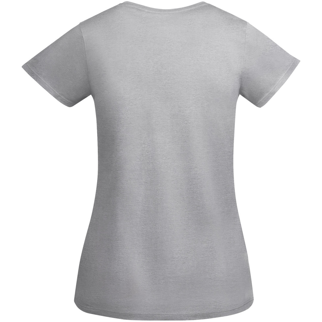 Přiléhavé dámské tričko z bio bavlny s certifikací OCS. Žebrovaný výstřih ke krku. Zesílené skryté švy v límci. Sundávací štítek. Bio látka OCS.