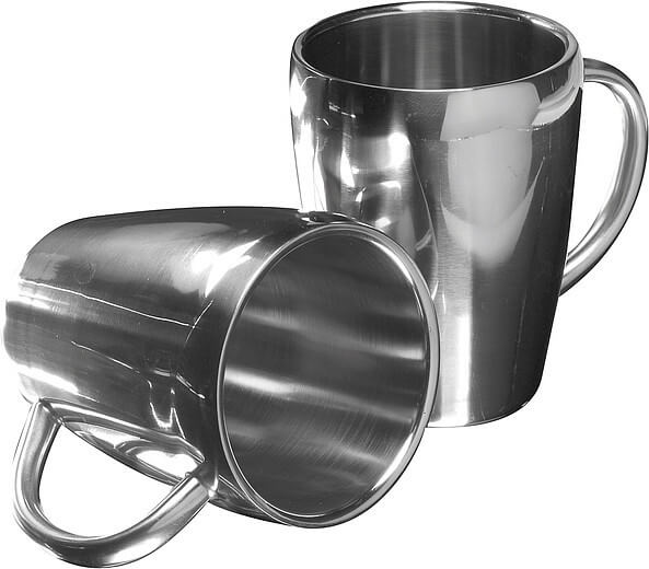 Sada dvou hrnků z nerezové oceli s dvojitou stěnou (200 ml).