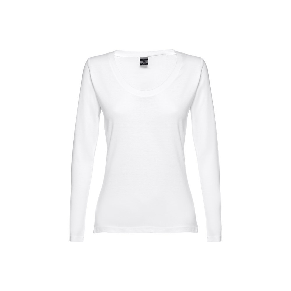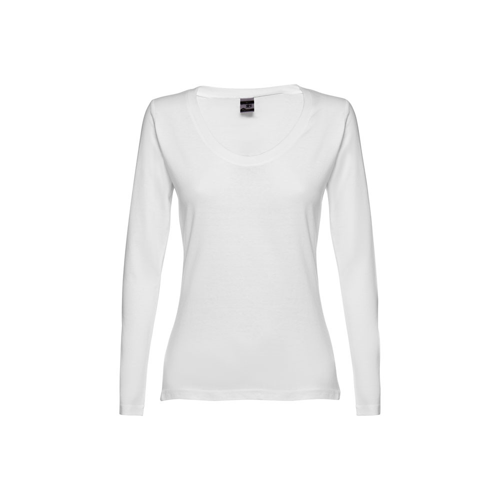 Dámské žerzejové tričko s dlouhým rukávem ze 100% bavlny (150 g/m²). Žerzejový lem výstřihu. Dvojité prošití na rukávech a spodním lemu. Střiženo a sešito.