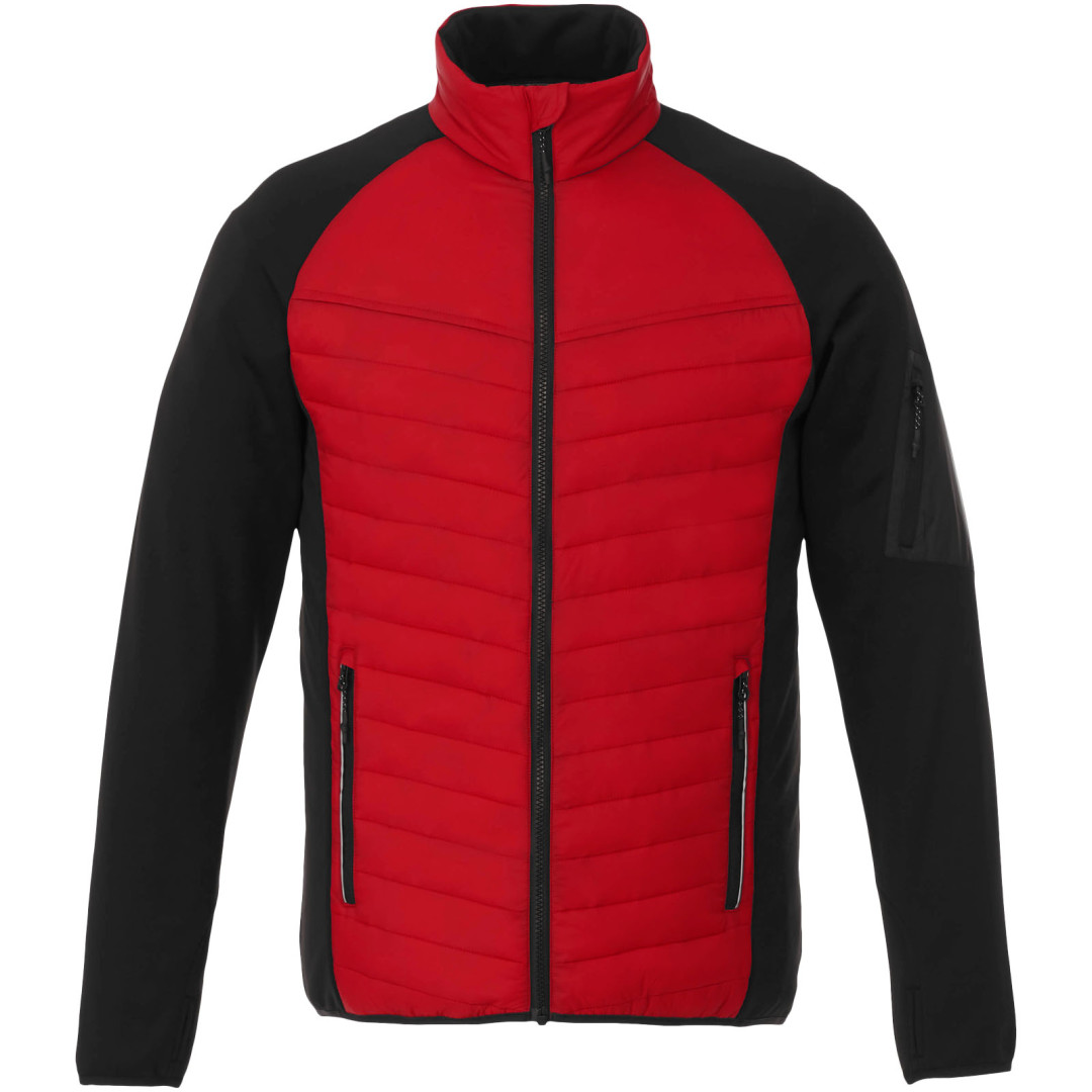 Pánská hybridní zateplená bunda Banff - dokonalé spojení stylu a výkonu. Vnitřní klopa proti bouři zajišťuje, že vítr nepronikne skrz bundu, a snížený zadní lem dodává dodatečné krytí pro větší teplo. Elastické vázání v kontrastní barvě dodává stylový akcent a zároveň zajišťuje bezpečné nošení. Matná tkanina bundy cire 380T má vodoodpudivou a nepropustnou úpravu, vyrobená z nylonu (38 g/m2). Kontrastní tkanina je interlokový úplet z polyesteru a elastanu (245 g/m2), který dodává pružnost a pohodlí. Izolace z falešného polyesterového peří poskytuje lehké teplo, ideální pro chladné dny. Nylonová tkanina 380T, vodoodpudivá a impregnovaná. Nylon, 38 g/m2, Contrast fabric, Zámková pletenina Polyester Elastan, 245 g/m2, Padding/filling, fake down insulation Polyester.