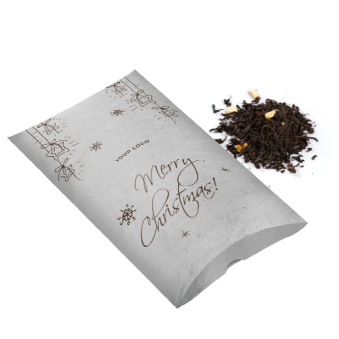 Čaj v papírovém polštářku 30g. Možnost výběru v běžných základních příchutích nebo ve vánoční příchuti, která navodí tu správnou atmosféru Vánoc. Tento produkt si můžete objednat v kraftovém papíře. Standardně je obal vyroben z bílého papíru.