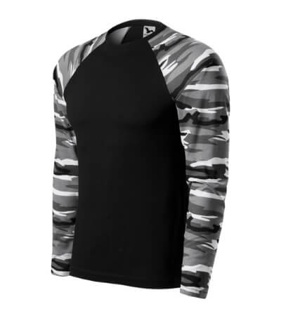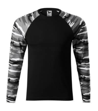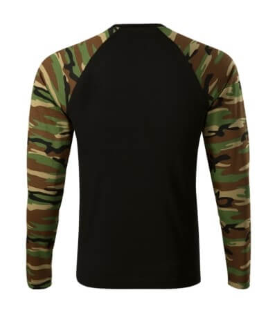 unisex triko střední gramáže s rukávy v barvě camouflage