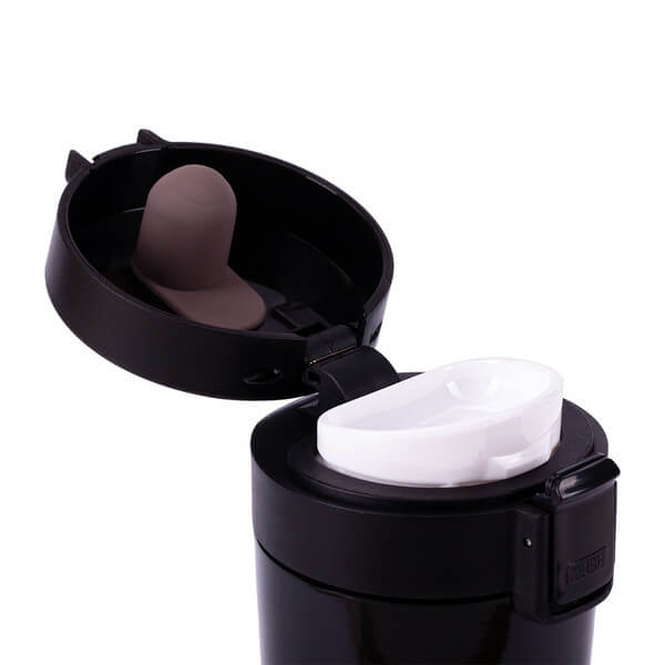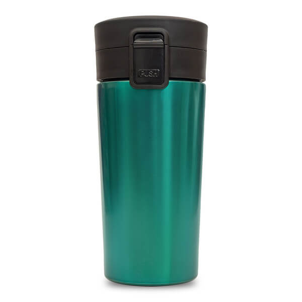 Termohrnek o objemu 350 ml se dvěma stěnami z nerezové oceli, neprotékavý. Vakuum mezi dvěma stěnami dává hrnku dokonalé tepelně izolační vlastnosti. Vnitřní stěna je vyrobena z vylepšené oceli 18/8. Dvojitá ochrana proti rozlití díky zavírání na tlačítko a zámek. Termoizolační schopnost 10 hodin.
