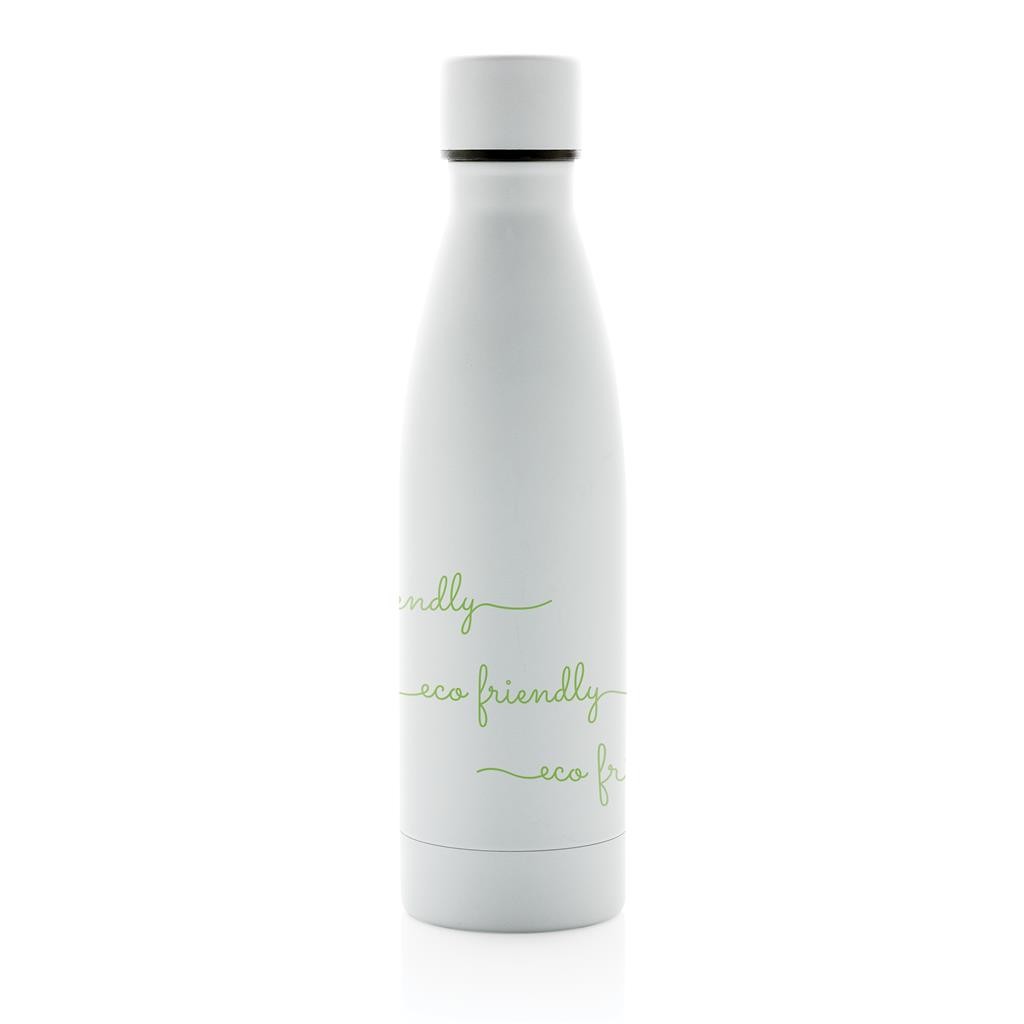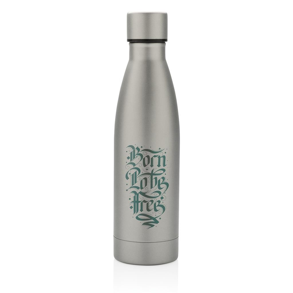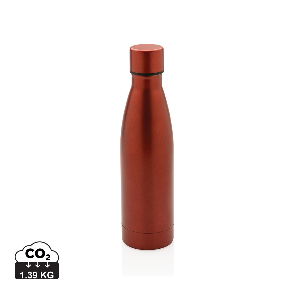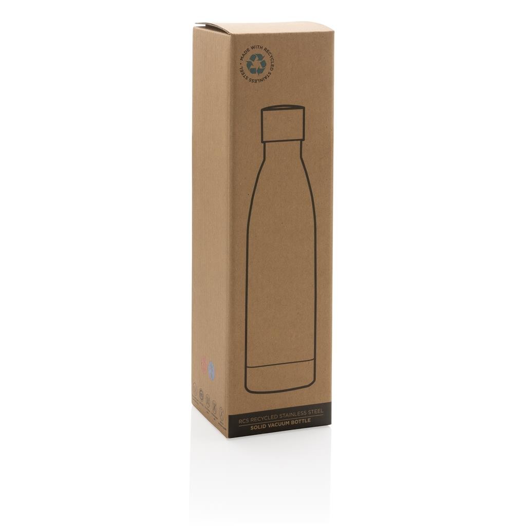 Nepropustná termo lahev s bezpečným šroubovacím uzávěrem a jednoduchým aktraktivním designem. Úzké tělo pasuje do většiny automobilových držáků na nápoje. Dvoustěnná vakuová izolace uchová nápoj horký po dobu až 5h a studený až 15h. Vyrobeno z RCS recyklované nerezavějící oceli. RCS (Recycled Claim Standard) je globální standard, který umožňuje ověřit použití recyklovaného materiálu v produktu napříč celým dodavatelským řetězcem. Podíl použitého recyklovaného materiálu vzhledem k celkové váze produktu: 85 %. Bez BPA. Objem: 500 ml. Baleno v FSC kraftové krabičce.