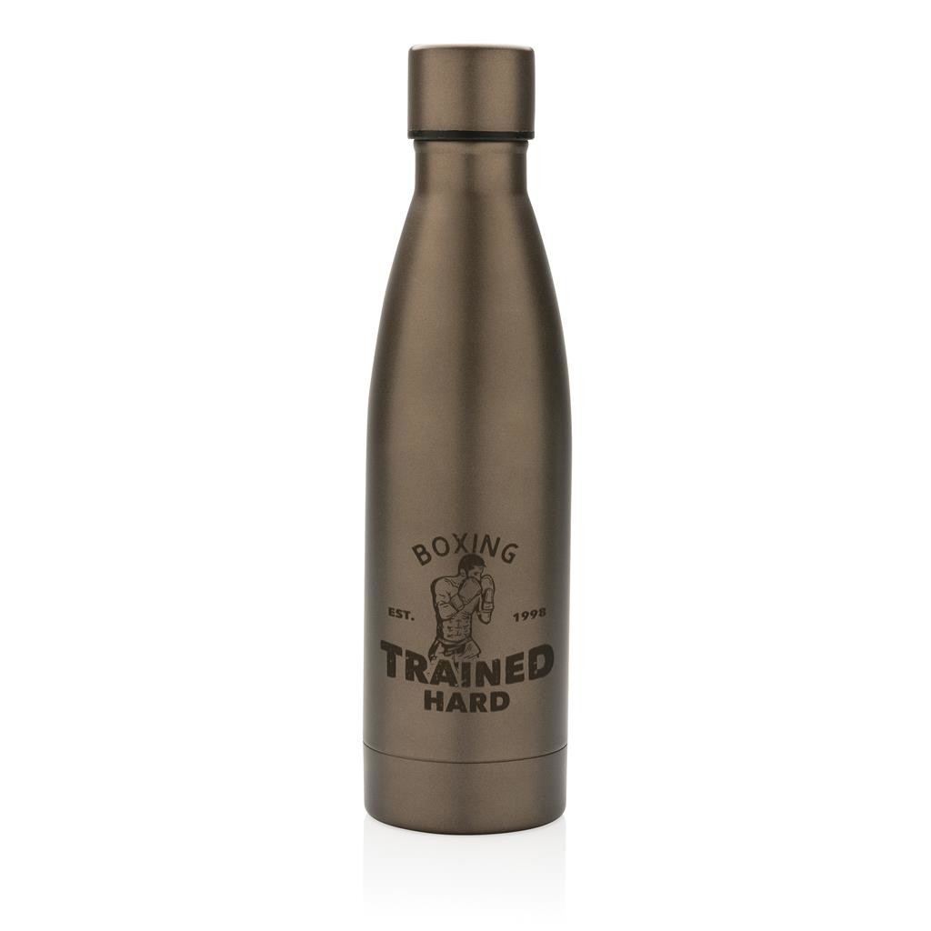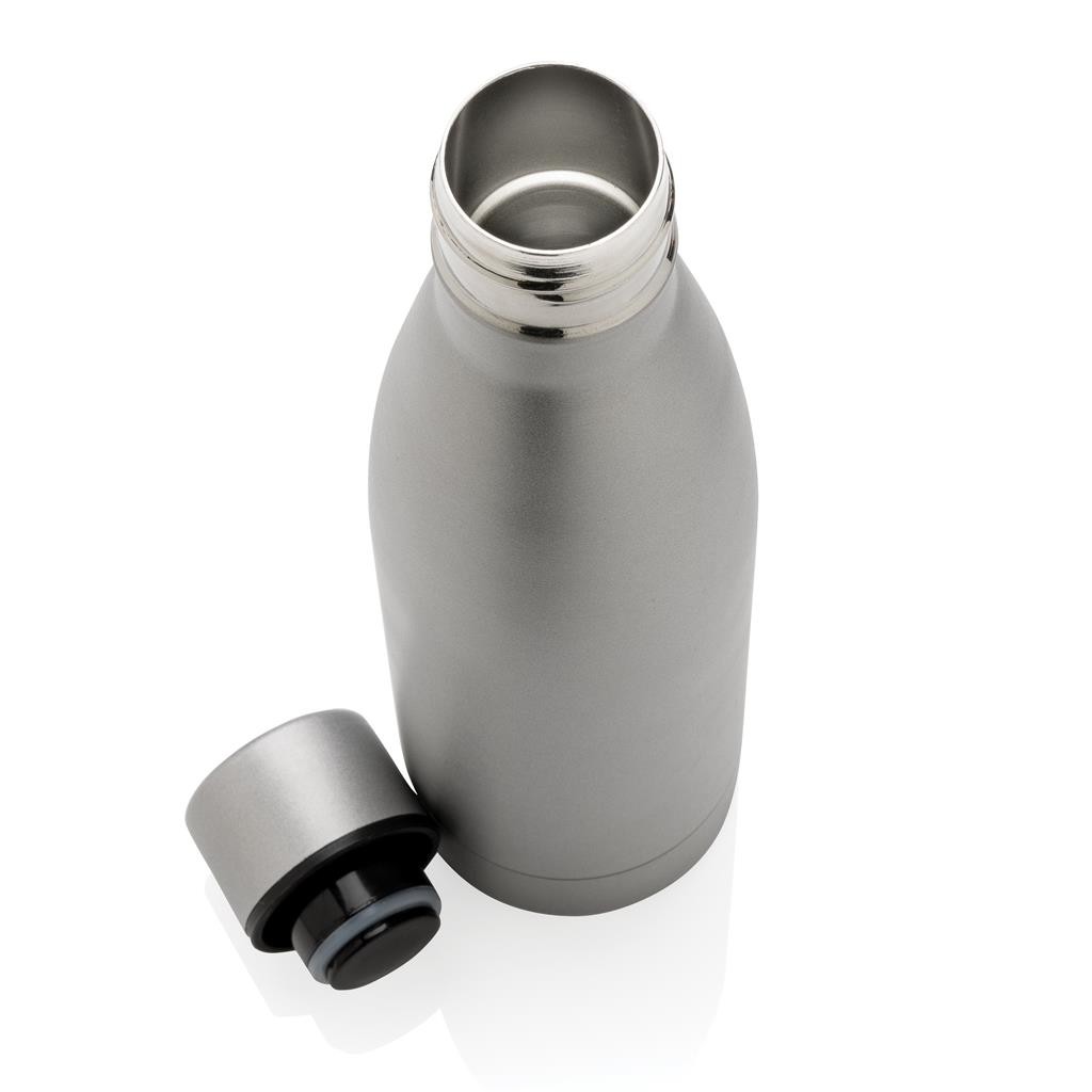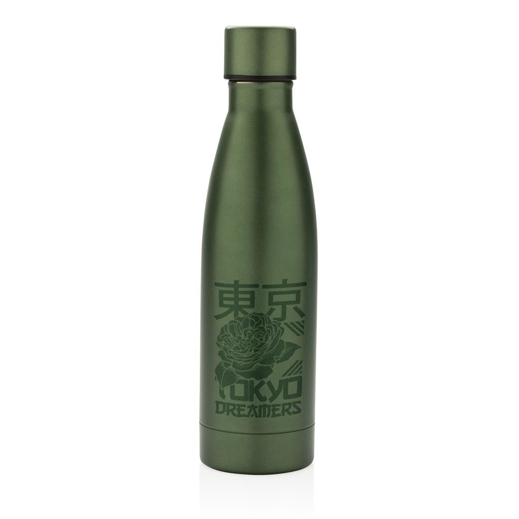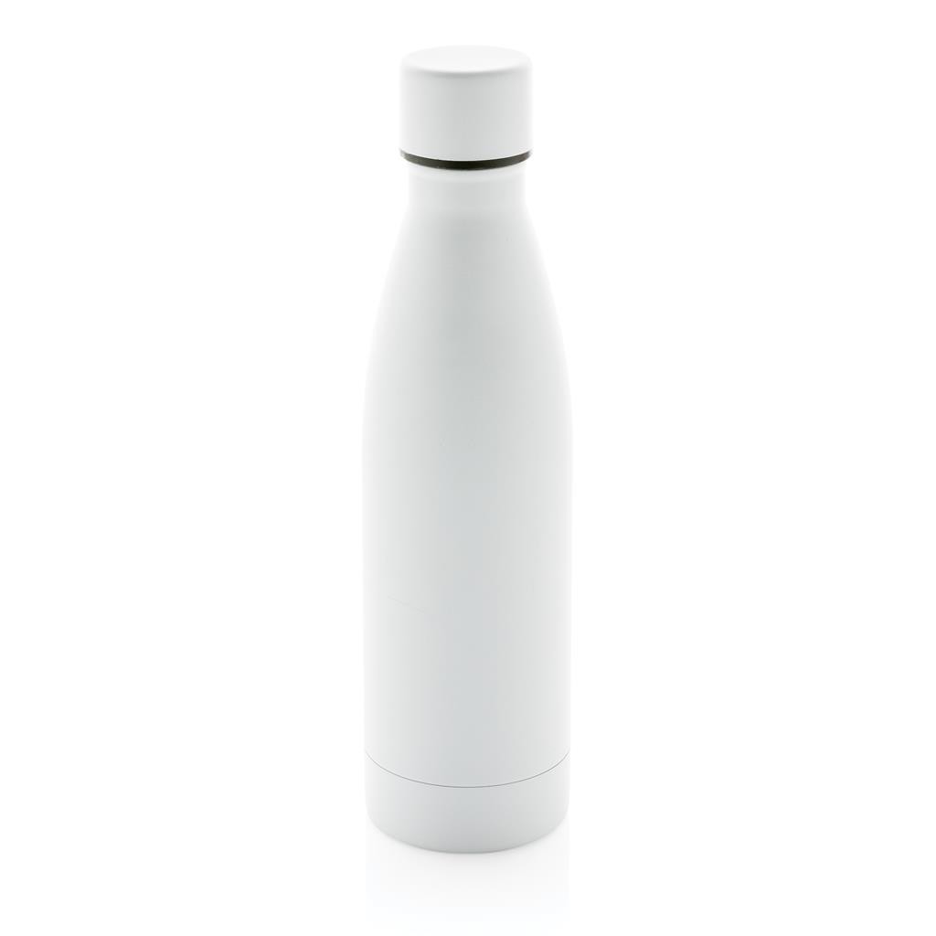 Nepropustná termo lahev s bezpečným šroubovacím uzávěrem a jednoduchým aktraktivním designem. Úzké tělo pasuje do většiny automobilových držáků na nápoje. Dvoustěnná vakuová izolace uchová nápoj horký po dobu až 5h a studený až 15h. Vyrobeno z RCS recyklované nerezavějící oceli. RCS (Recycled Claim Standard) je globální standard, který umožňuje ověřit použití recyklovaného materiálu v produktu napříč celým dodavatelským řetězcem. Podíl použitého recyklovaného materiálu vzhledem k celkové váze produktu: 85 %. Bez BPA. Objem: 500 ml. Baleno v FSC kraftové krabičce.