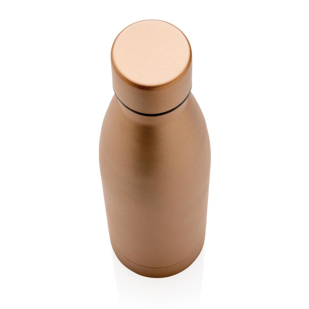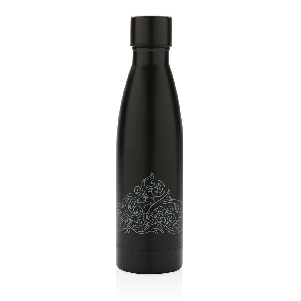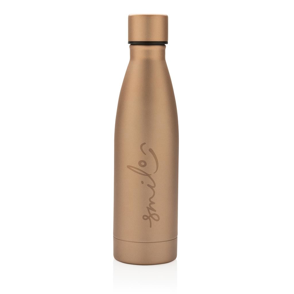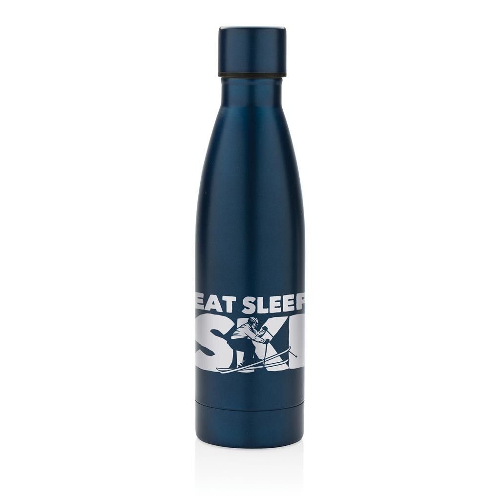 Nepropustná termo lahev s bezpečným šroubovacím uzávěrem a jednoduchým aktraktivním designem. Úzké tělo pasuje do většiny automobilových držáků na nápoje. Dvoustěnná vakuová izolace uchová nápoj horký po dobu až 5h a studený až 15h. Vyrobeno z RCS recyklované nerezavějící oceli. RCS (Recycled Claim Standard) je globální standard, který umožňuje ověřit použití recyklovaného materiálu v produktu napříč celým dodavatelským řetězcem. Podíl použitého recyklovaného materiálu vzhledem k celkové váze produktu: 85 %. Bez BPA. Objem: 500 ml. Baleno v FSC kraftové krabičce.