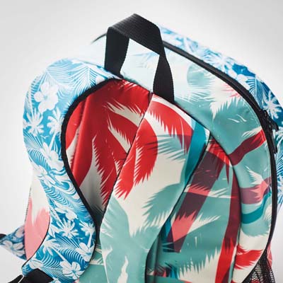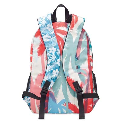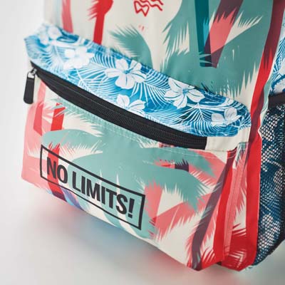 Celoplošně potištěný batoh z keprového polyesteru 290T s přední kapsou na zip a volitelnou síťovanou kapsou na obou stranách. Velikost: 31(š) x 14,5(h) x 43(v)cm. Nechte přední stranu a boky plnobarevně potisknout (fotografickým) designem, můžete dát potisknout i zadní část a ramenní popruhy.